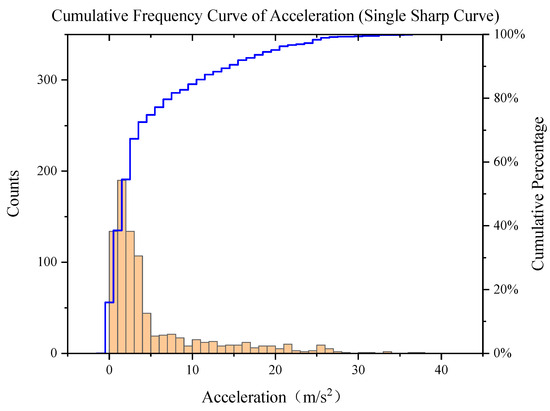 Cumulative frequency curve of acceleration for single sharp curve highway dataset.
