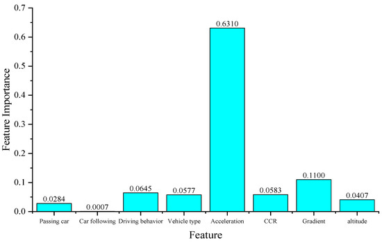 Although the proposed model successfully generates vehicle speed predictions that can assist relevant authorities in formulating speed limit policies, the interpretability of these predictions remains limited. To enhance the practical applicability of the model, this study further introduces an interpretable decision tree model to evaluate the importance of each feature variable. This approach provides more targeted and evidence-based guidance for policymakers. The feature importance results for the single-curve and continuous-curve road scenarios are illustrated in Figure 16 and Figure 17, respectively.