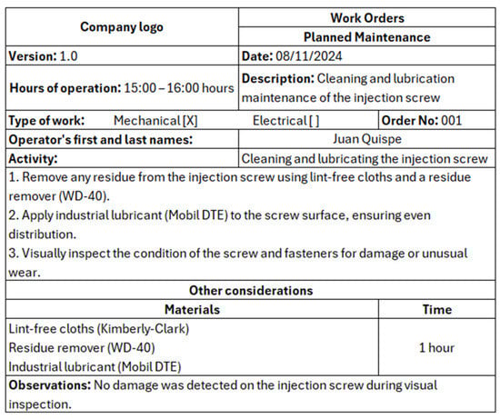 Maintenance tasks for injection and blow molding machines were standardized, with the aim of ensuring that all activities are carried out consistently, safely, and efficiently Figure 3. Standardization is crucial in the manufacturing industry, as it reduces human error, improves operational safety, and facilitates staff training.
