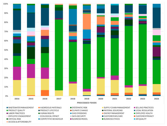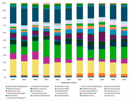 ESG media attention at the industry level: financially material ESG issues—Processed Foods (2014–2024).