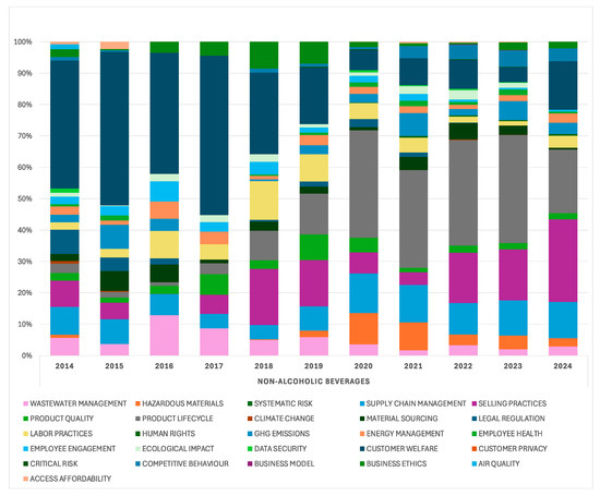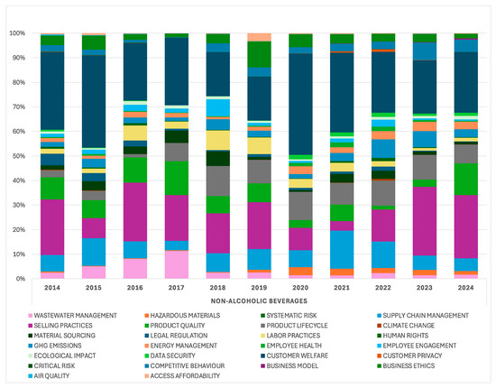 ESG media attention at the industry level: financially material ESG issues—Non-Alcoholic Beverages (2014–2024).