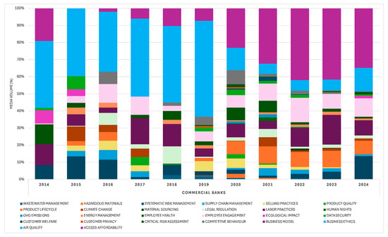 ESG media attention at the industry level: financially material ESG issues—Commercial Banks (2014–2024).