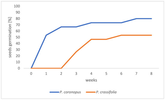 - Mira, S.; Veiga-Barbosa, L.; González-Benito, M.; Pérez-García, F. Inter-population variation in germination characteristics of “Plantago lanceolata” seeds: Effects of temperature, osmotic stress and salinity. Appl. Bot. 2018, 39, 89–96. [Google Scholar] [CrossRef]