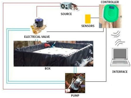 Selecting appropriate components, which are efficient and economical to control the recirculation process of the crop, is a difficult task. When reviewing previous research, work has been found regarding programmable logic controls (PLC) and embedded systems such as Arduino cards, applied in the process of recirculating nutrients from soilless production systems. However, their costs and levels of management may be limitations [37,38,39,40].
