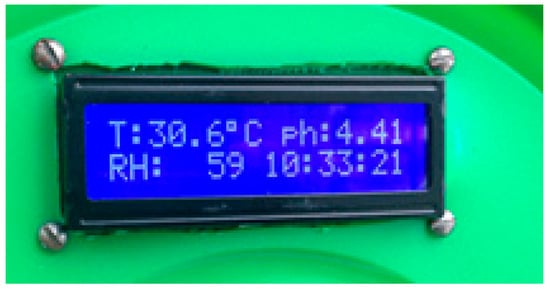 The system that automatically controlled the process is the PIC18F4550 [46] serial microcontroller, which defines the exact time and date. The integrated circuit is placed in an infinite loop, where it reads the sensors and converts the values to be displayed on the liquid crystal display (LCD). The orchard variables are sent to the user interface for the operator to view.
