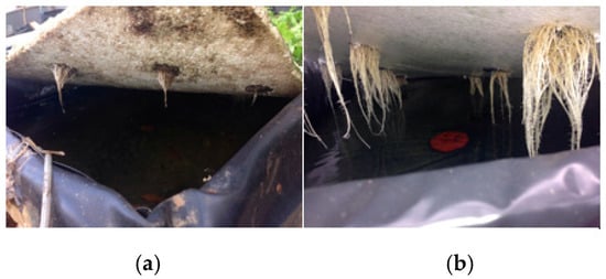 This figure presents the sizes of the roots obtained in two of the hydroponic vats in this research: (a) control tub roots with 1 recirculation; (b) tub roots with 4 Recirculations.