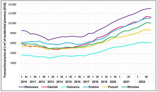 At the same time, residential property prices in Warsaw have consistently ranked as the highest in Poland during the studied period (Figure 2), demonstrating a high growth rate despite market fluctuations induced by the COVID-19 pandemic.