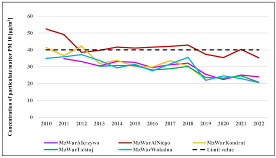 Average annual concentration of particulate matter PM10 [µg/m3]. Source: Chief Inspectorate for Environmental Protection.