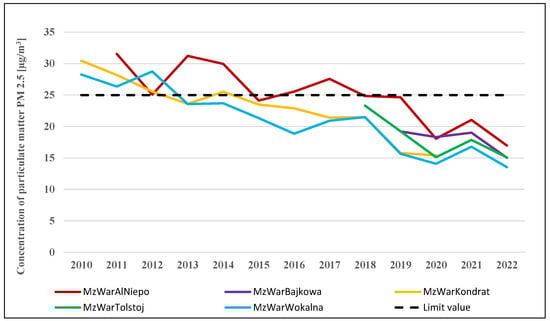 Average annual concentration of particulate matter PM2.5 [µg/m3]. Source: Chief Inspectorate for Environmental Protection.