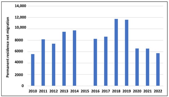 This economic stability and continuous development, combined with the permanent influx of the working-age population (Figure 10), has positioned Warsaw as an attractive market for residential real estate. However, this trend was disrupted in 2020 due to the COVID-19 pandemic. Positive net migration—defined as the inflow of population for permanent residence—is an additional factor driving demand for residential properties.
