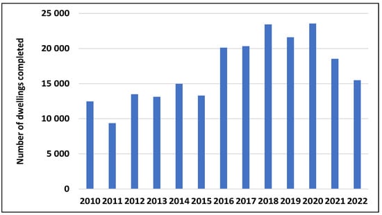 During the analyzed period, the growing demand was met and supported by an increasing number of completed dwellings. This growth can be attributed to the recovery from the post-crisis downturn observed internationally in previous years and the microeconomic situation in Poland (Figure 11).