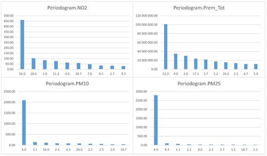 Comparison of the structure of periodic changes—periodograms of the 10 strongest periodic cycles.