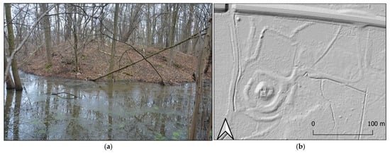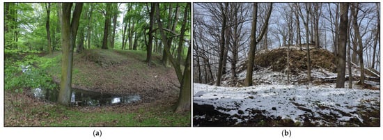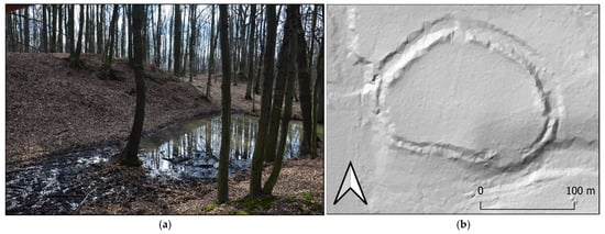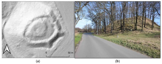 The archaeological sites under examination are referred to in Polish as grodziska—a term denoting the remnants of fortified settlements known as grody. In English translations, these objects are named differently depending on their chronological and geographical context. For instance, upland and submontane fortifications are typically termed hillforts [96], while lowland fortifications associated with Slavic settlement traditions are often described as ring forts [97]. Additional terminological variations in the literature include strongholds [98,99], earthworks, motte-and-bailey castle [100], and sometimes burgwall, referring to a German term (German: Burgwalle), literally meaning “fort rampart”. Most of these terms are used to reflect distinct architectonic/morphological attributes, sometimes related to a specific time period and/or region.