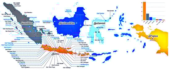 Urban planning policies aimed at supporting sustainable food systems and environmental management are not solely based on food availability, but are also influenced by accessibility and utilization, which are closely tied to the socio-economic conditions and infrastructure of the city. Indonesia has seventy-five cities with planning to become smart cities, as depicted in Figure 2.
