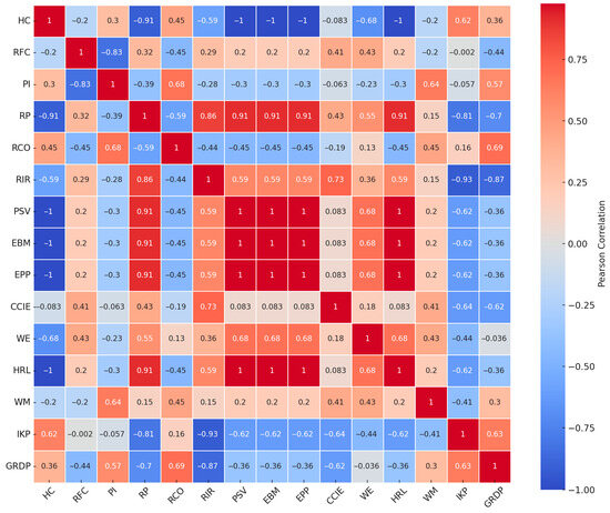 The correlation between regional policies (RPs) and human capital (HC) is −0.91, indicating a significant misalignment between implemented policies and the developmental needs of human capital. This finding warrants serious attention to ensure that policies are more strategically directed toward strengthening human capital. This issue primarily arises from a mismatch between educational attainment and employment, particularly among individuals engaged in precarious or part-time work with low competency levels [102]. Zhao et al. [103] also highlight that fiscal subsidies may exacerbate the human capital mismatch. Therefore, these policies require comprehensive evaluation to ensure that they are responsibly aligned with the tangible developmental needs.