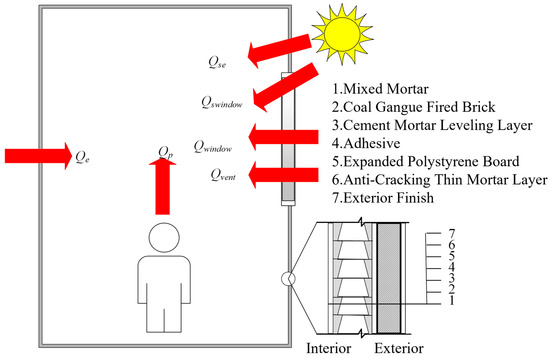 The heat exchange processes within the building are illustrated in Figure 1. To reduce model complexity, this study simplifies the thermal storage process of the building envelope. Due to the presence of the building envelope, there is a temperature difference between the indoor and outdoor environments, leading to the following three heat exchange processes: