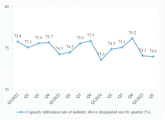 China’s quarterly above-scale industrial capacity utilization rate from 2022 to 2025.