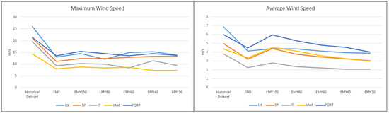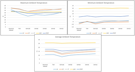 Although the original weather data analysis is not a target for this assessment, a first view of each site’s conditions is provided in Table 2. It is important to note that all evaluations in this study, including those involving historical data, TMY, and EMY models, are based on the same dataset. Both TMY and EMY are generated from the same historical records for each site, ensuring that voltage analyses are performed using a consistent data source. This approach enables a fair comparison of results and eliminates potential biases or errors arising from dataset discrepancies.