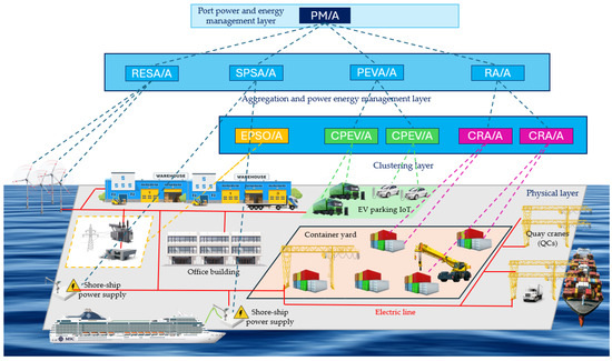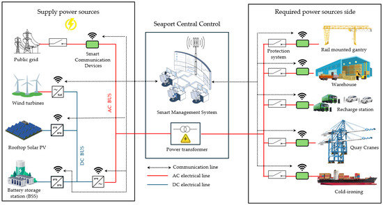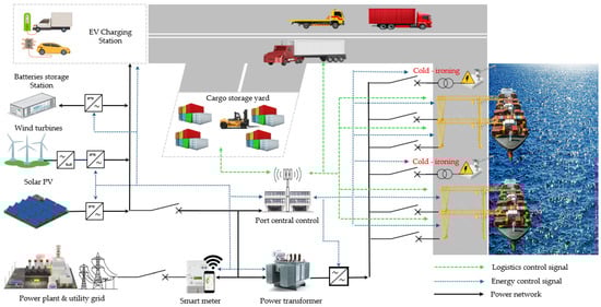 - Sadiq, M.; Su, C.L.; Terriche, Y.; Aragon, C.A.; Ali, S.W.; Buzna, L.; Parise, G. Towards Next-Generation Smart Ports: A Review on Seaport Microgrid, Smart Architecture, and Future Prospects. In Proceedings of the 2023 IEEE Industry Applications Society Annual Meeting (IAS), Nashville, TN, USA, 29 October–2 November 2023; IEEE: New York, NY, USA, 2023; pp. 1–8. [Google Scholar]