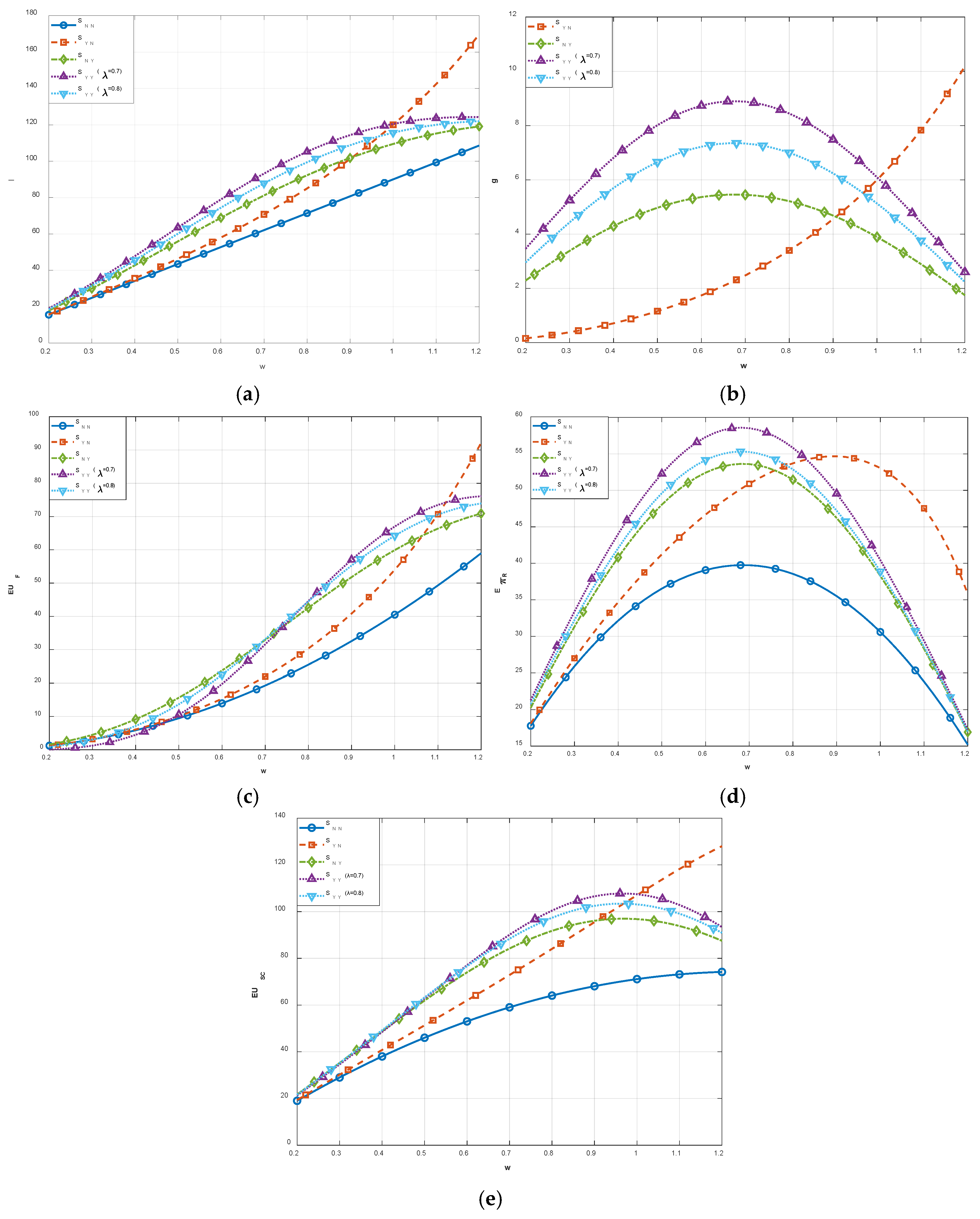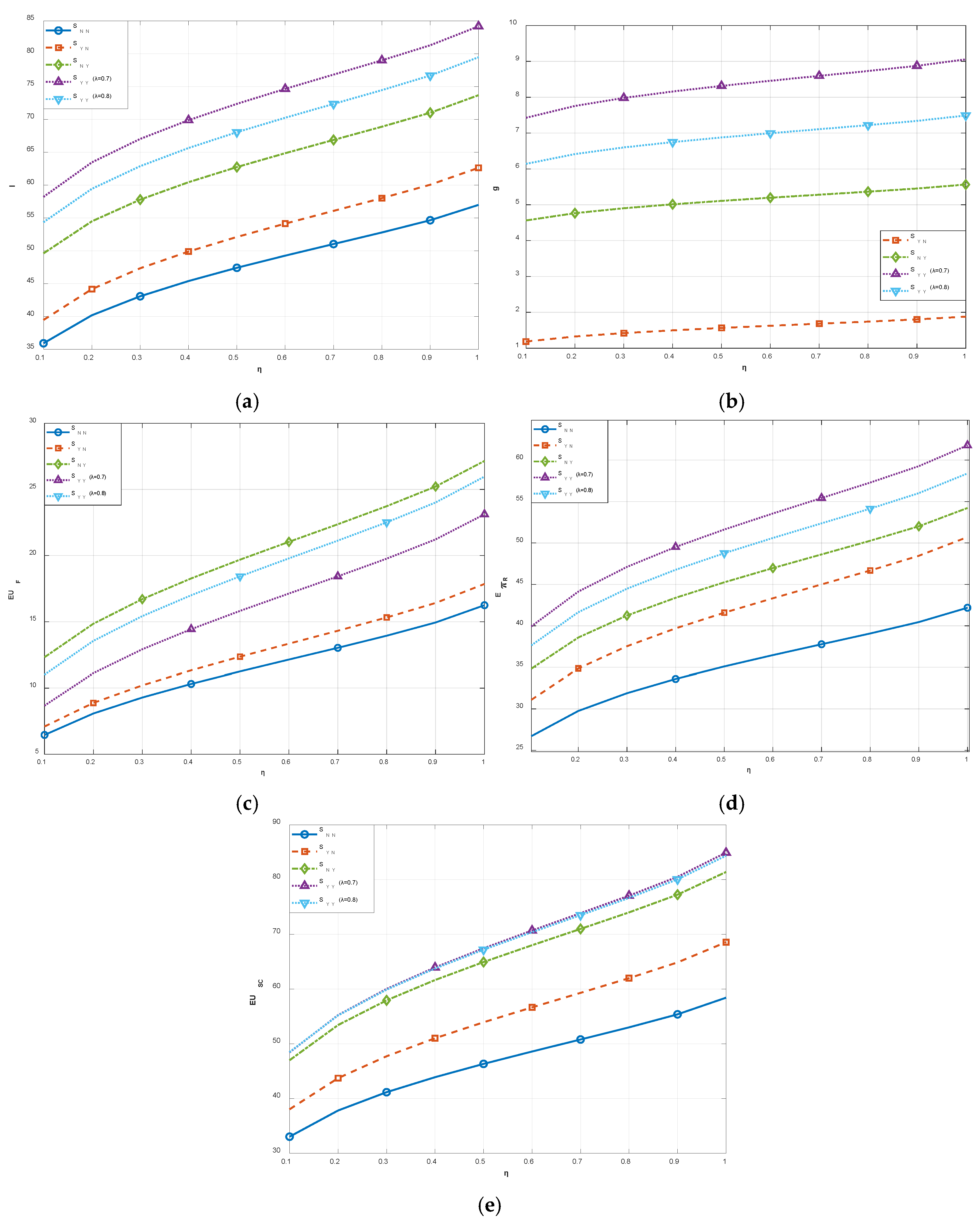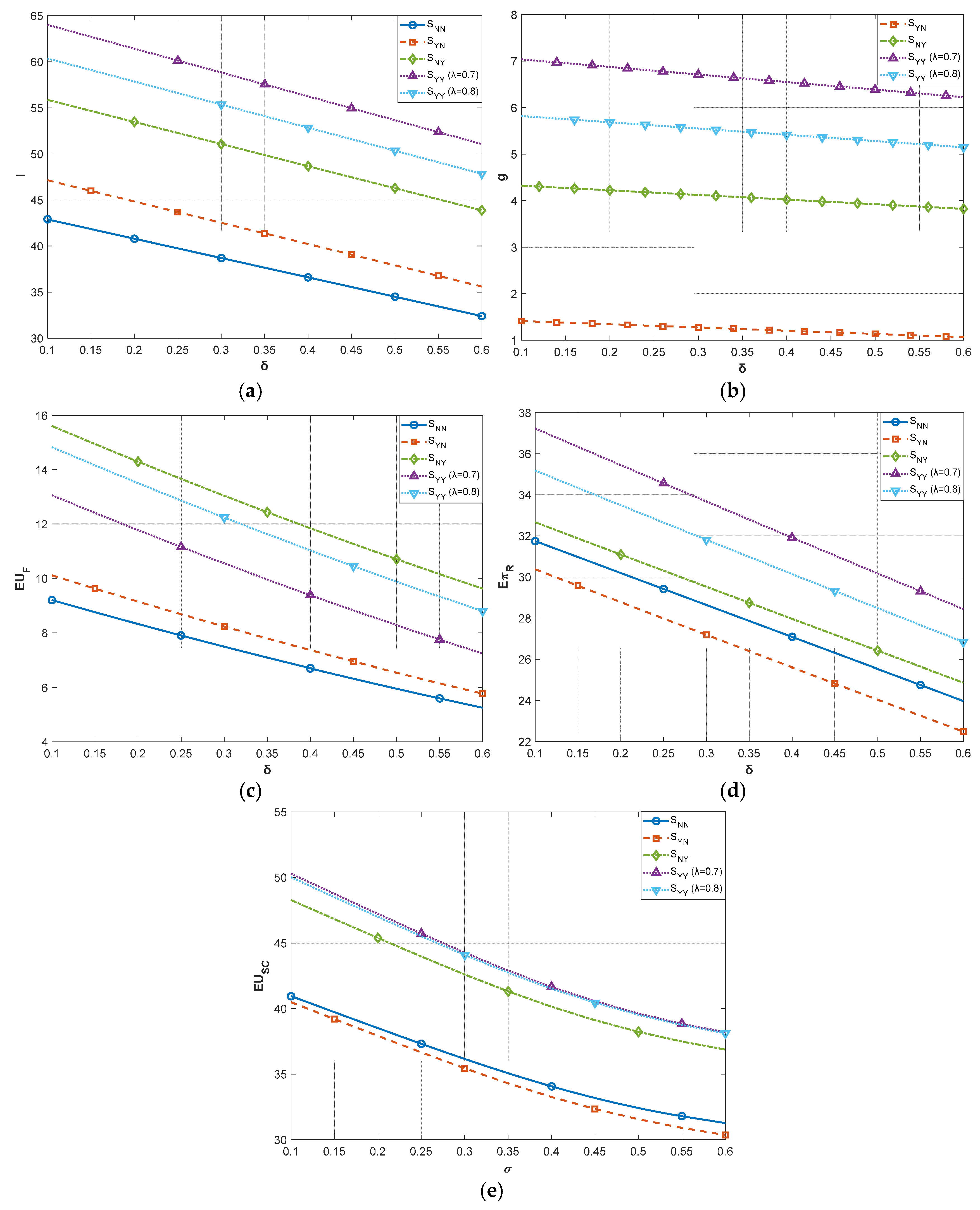 The supply chain’s expected utility in different models, = [58] |