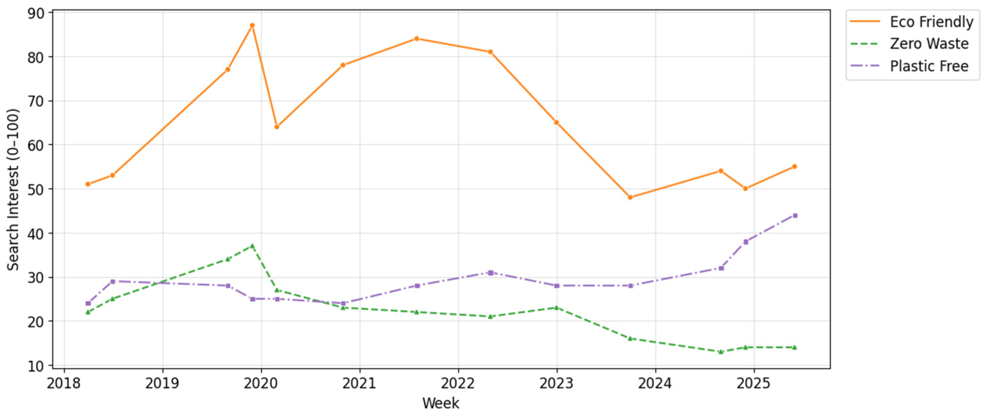 2]. At the same time, consumer-oriented terms such as “zero waste”, “plastic-free”, and “eco-friendly” have gained popularity, reflecting a lifestyle shift toward sustainability.