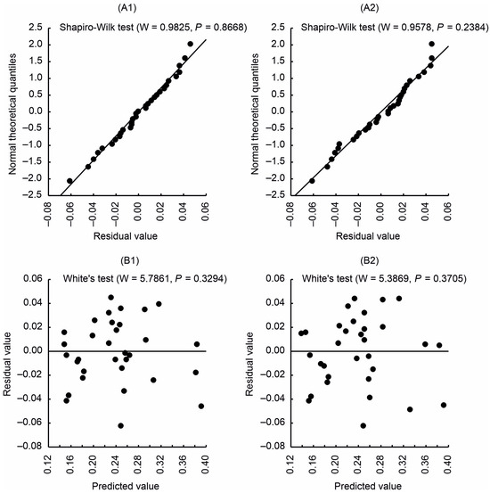 - The distribution of regression residuals was analysed using White’s test [58]: