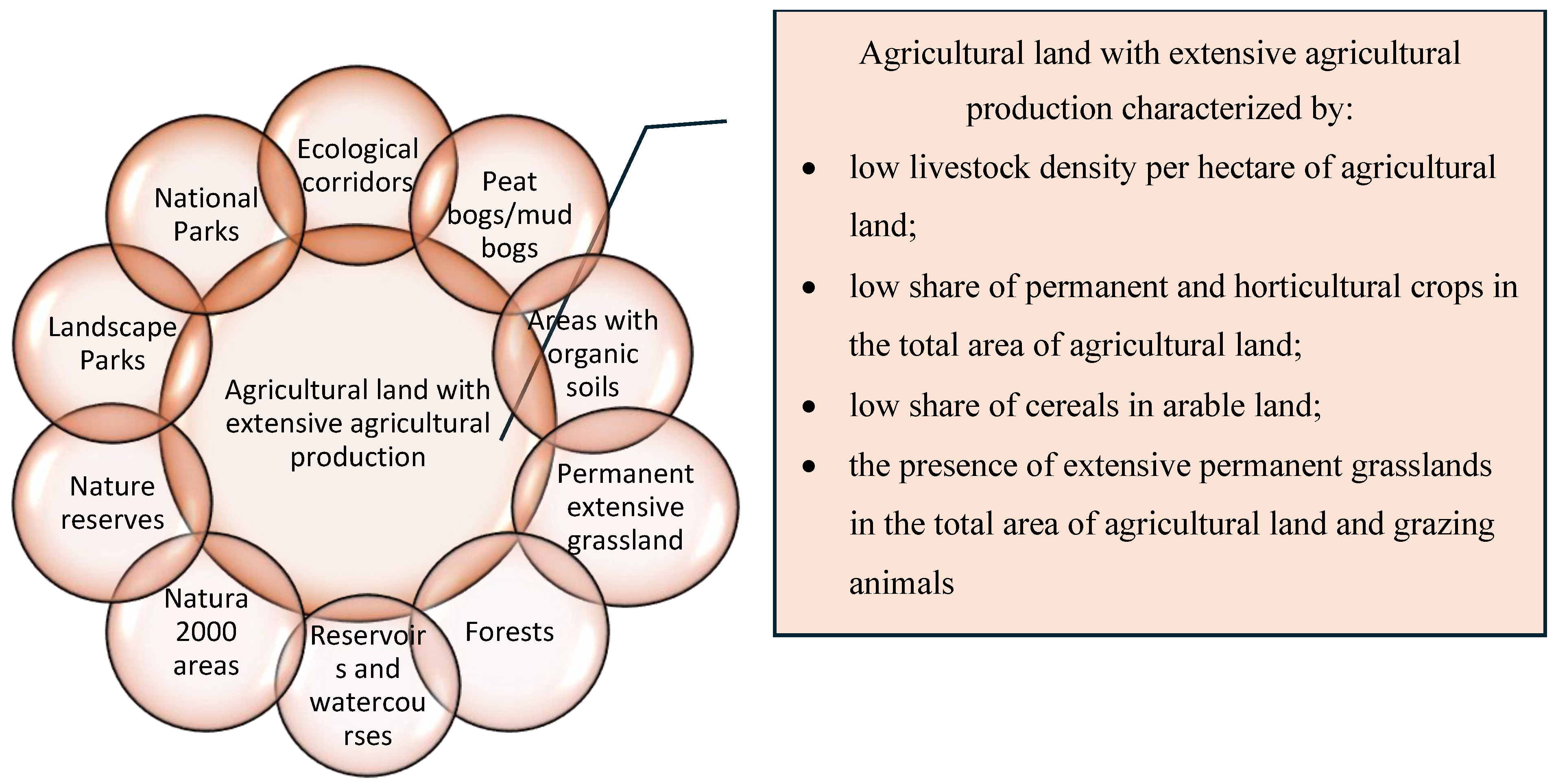 - Jadczyszyn, J.; Zieliński, M. Assessment of farms from High Nature Value Farmland areas in Poland. Ann. Pol. Assoc. Agric. Agribus. Econ. 2020, 22, 108–118. [Google Scholar] [CrossRef]