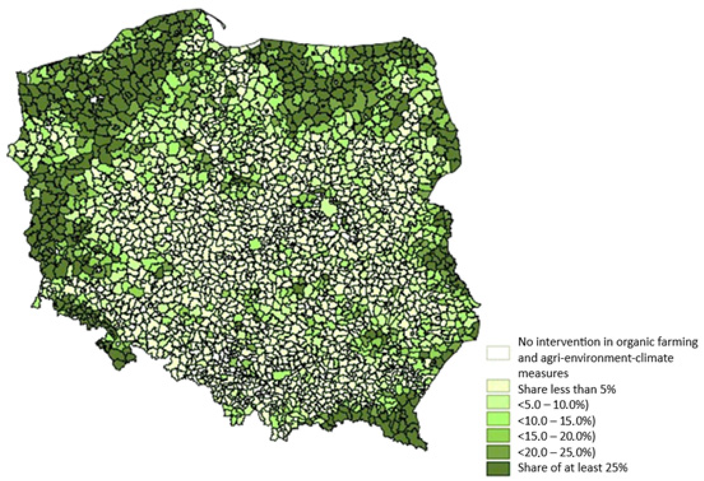 - with at least 25% of agricultural land covered by agri-environment-climate measures.