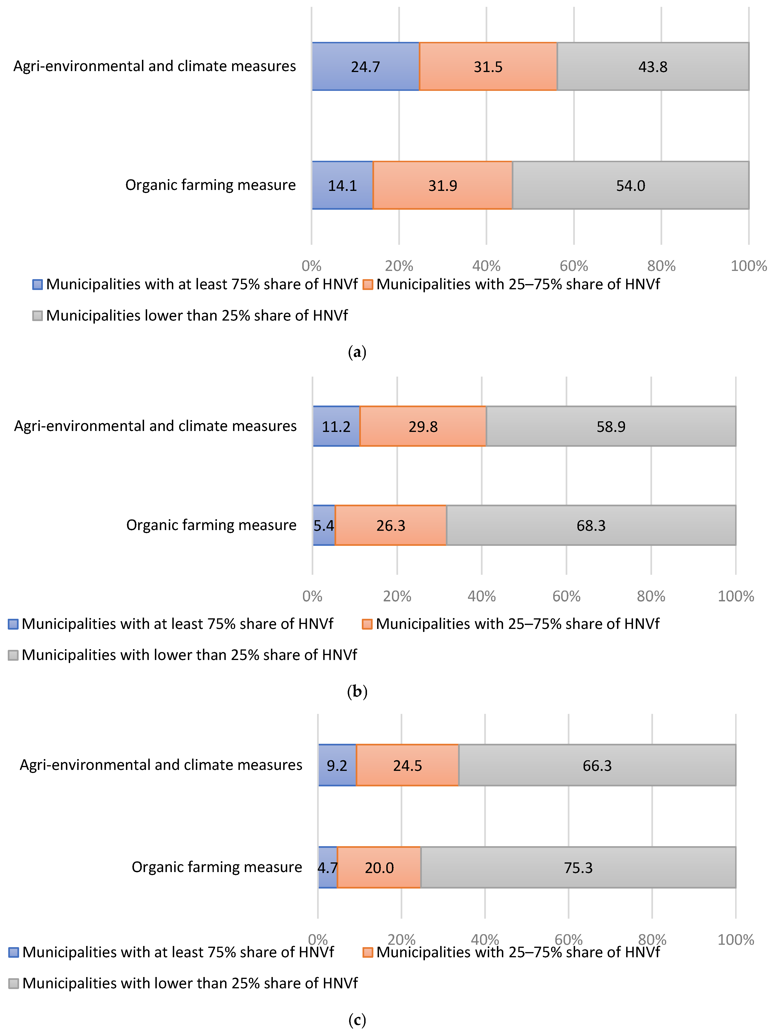 3.2.2. HNVf Areas Versus Organic Farming and Agri-Environment-Climate Measures