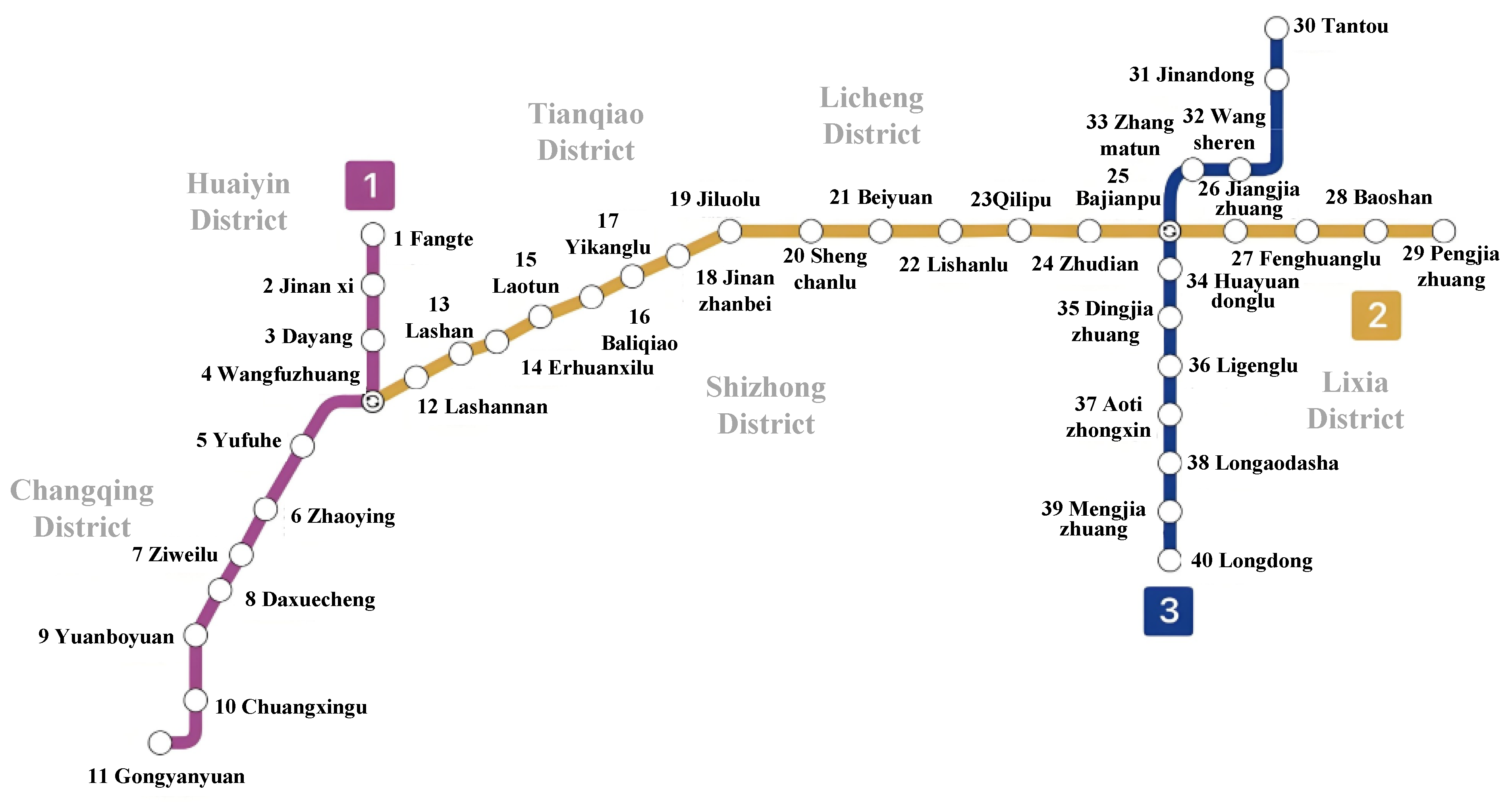 | Jinanxi | 100 | Baliqiao | 85 | Tantou | 115 |