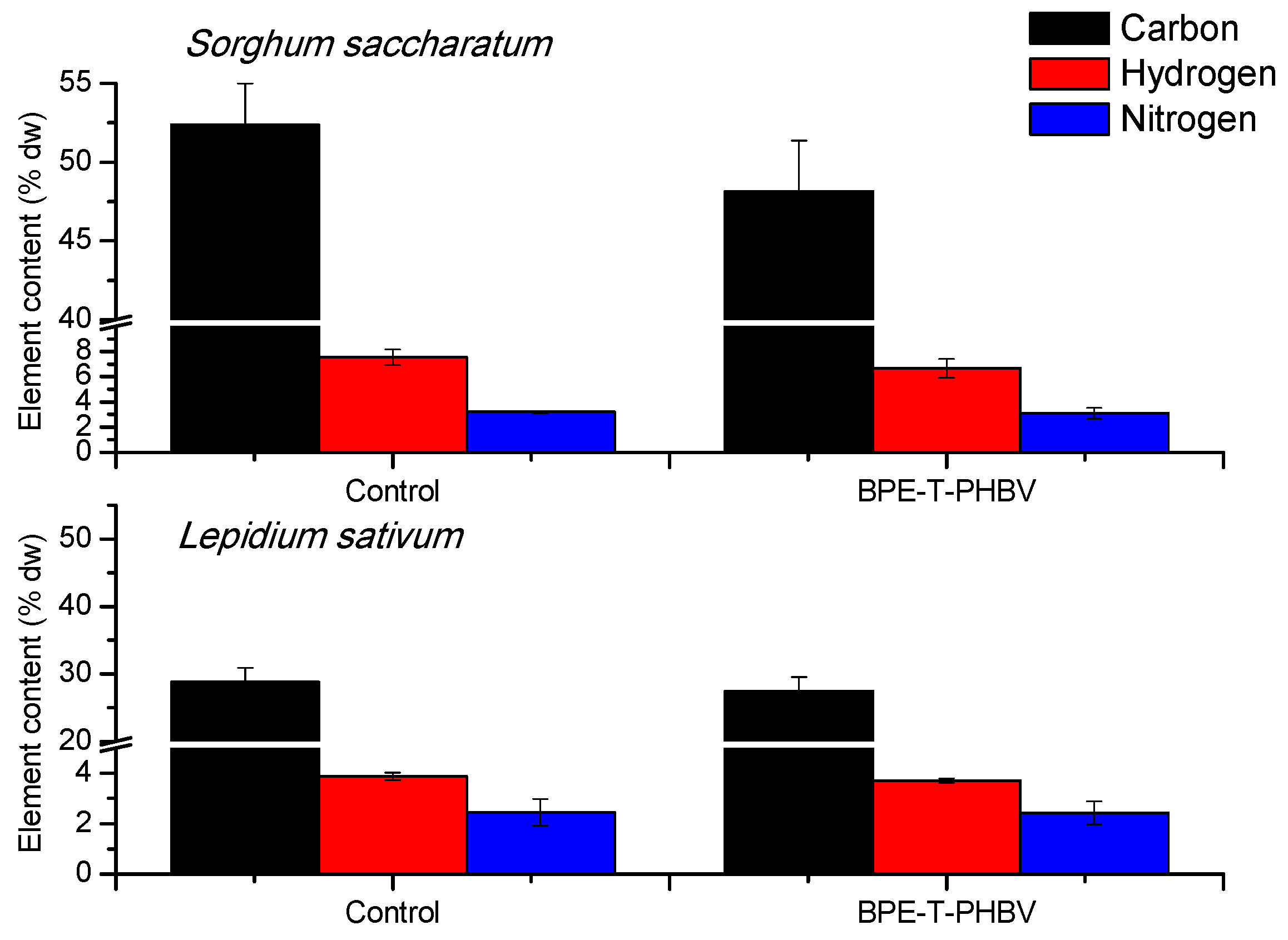 - Brown, R.W.; Chadwick, D.R.; Zang, H.; Graf, M.; Liu, X.; Wang, K.; Greenfield, L.M.; Jones, D.L. Bioplastic (PHBV) addition to soil alters microbial community structure and negatively affects plant-microbial metabolic functioning in maize. J. Hazard. Mater. 2023, 441, 129959. [Google Scholar] [CrossRef]
