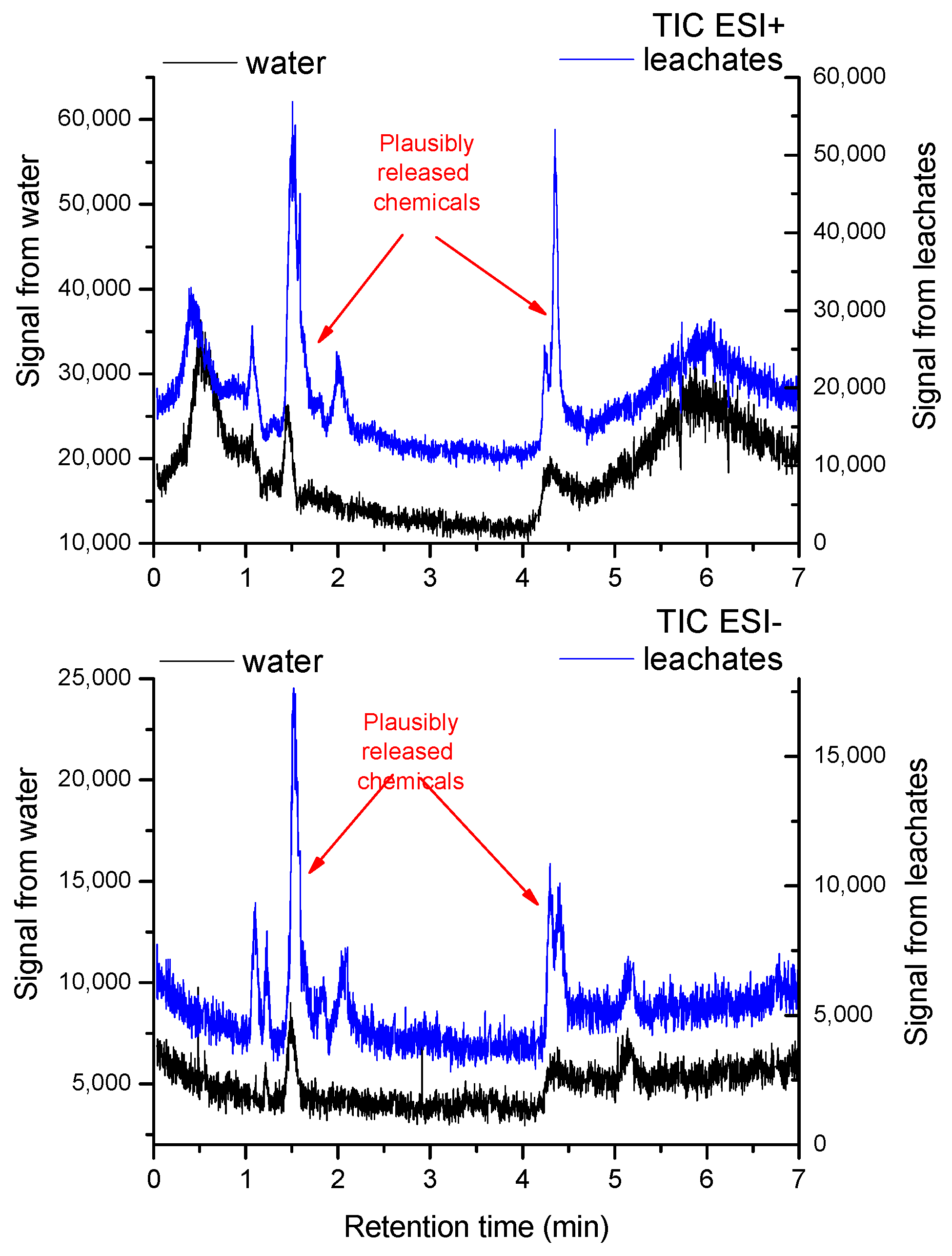 2.4. Chromatographic Analysis of Leachates