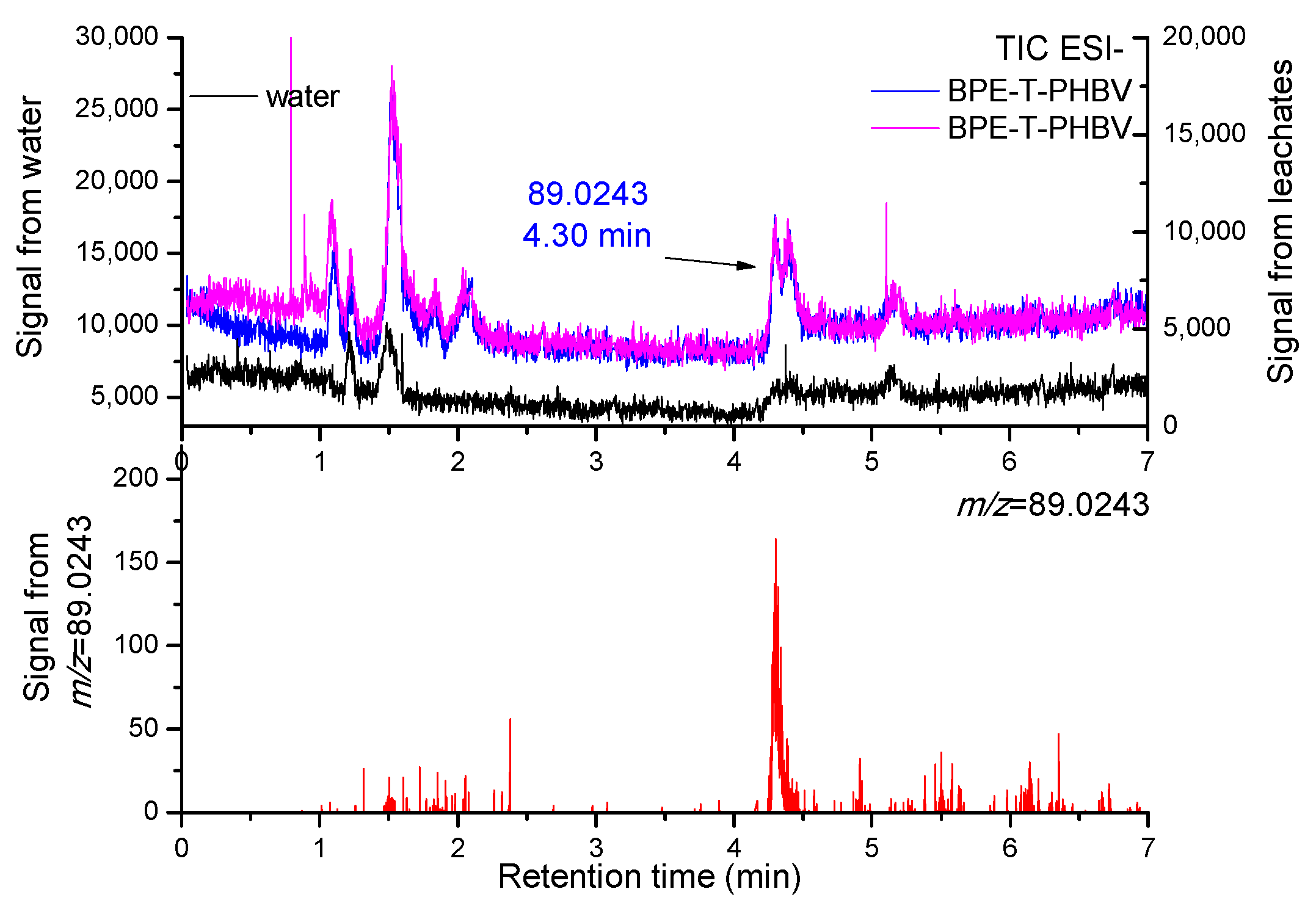 3.2. Identification of the Chemicals Released from Leachates of PHBV-Based Microplastics