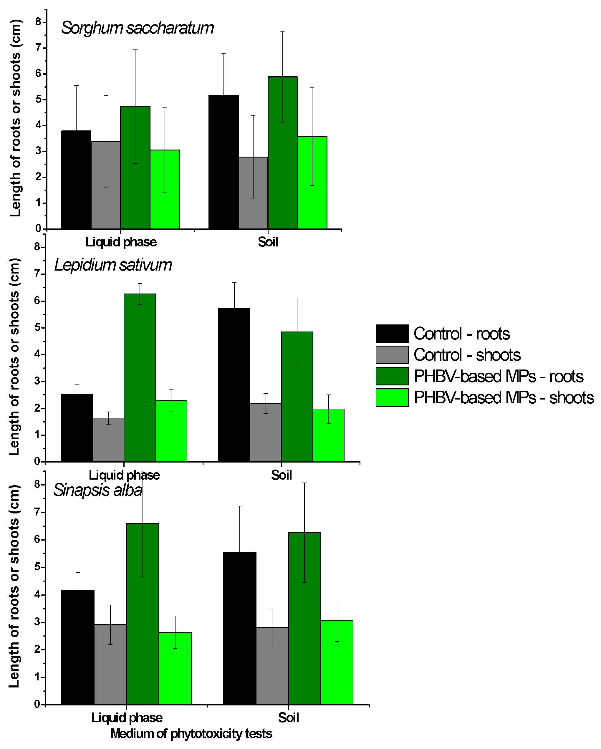 3.3. Effect of Leachates of PHBV-Based Microplastics on Higher Plants