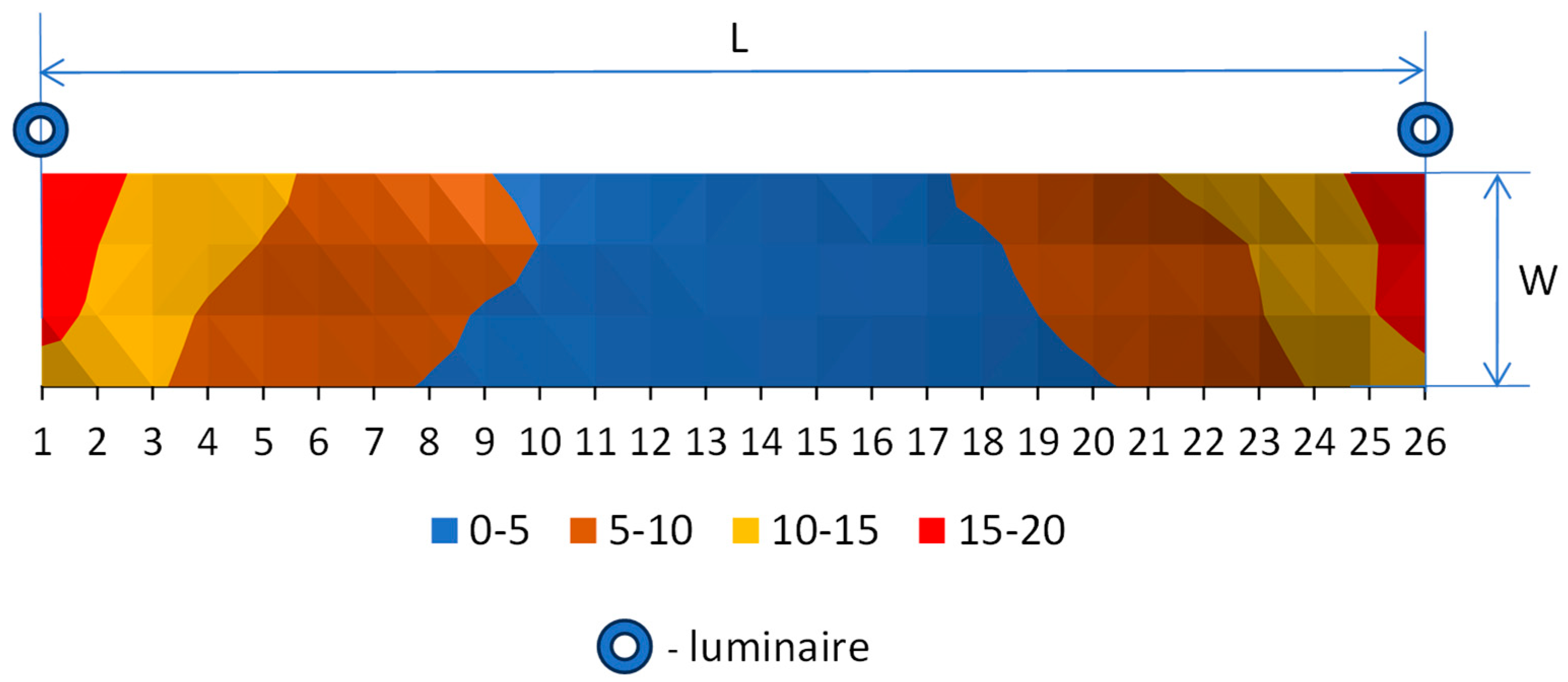 - EN 13201-2:2015; Road Lighting—Part 2: Performance Requirements. European Committee for Standardization (CEN): Brussels, Belgium, 2015.