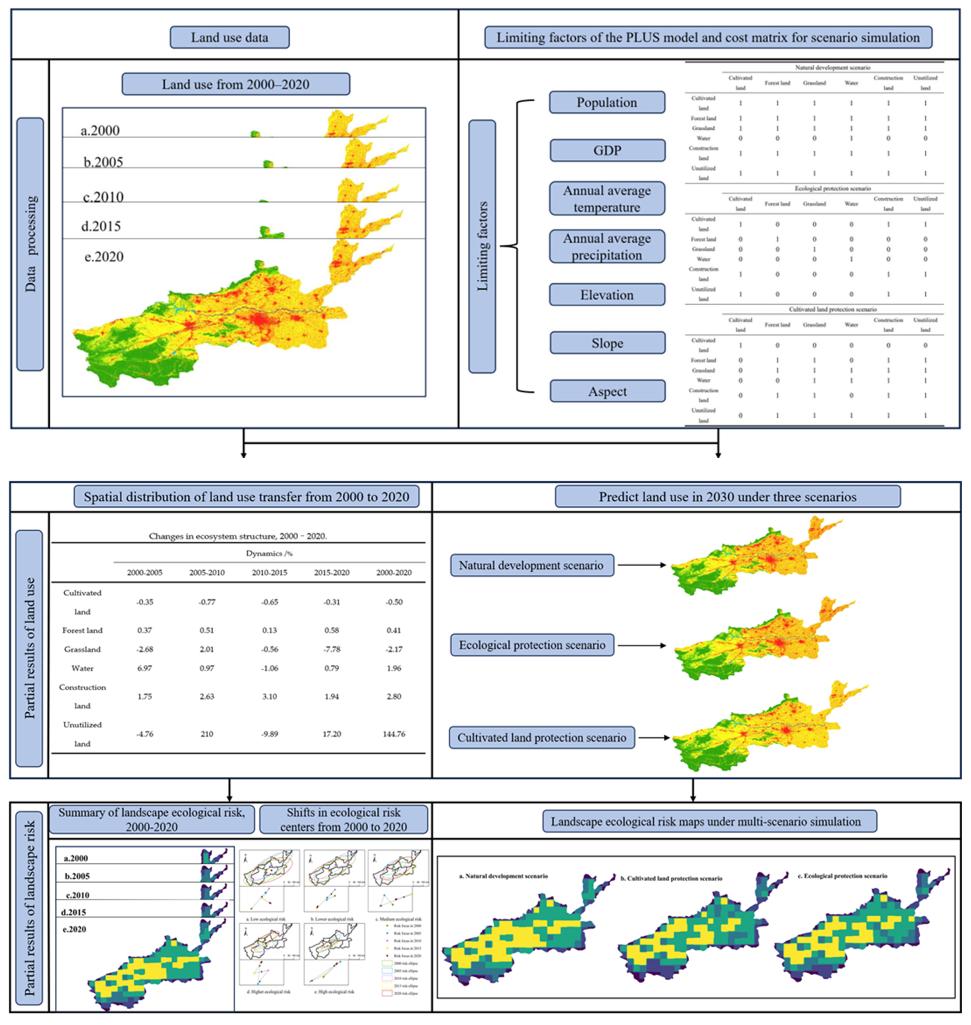 - Li, C.; Gao, B.; Wu, Y.; Zheng, K.; Wu, Y. Dynamic simulation of landscape ecological risk in mountain towns based on PLUS model. J. Zhejiang AF Univ. 2022, 39, 84–94. [Google Scholar] [CrossRef]