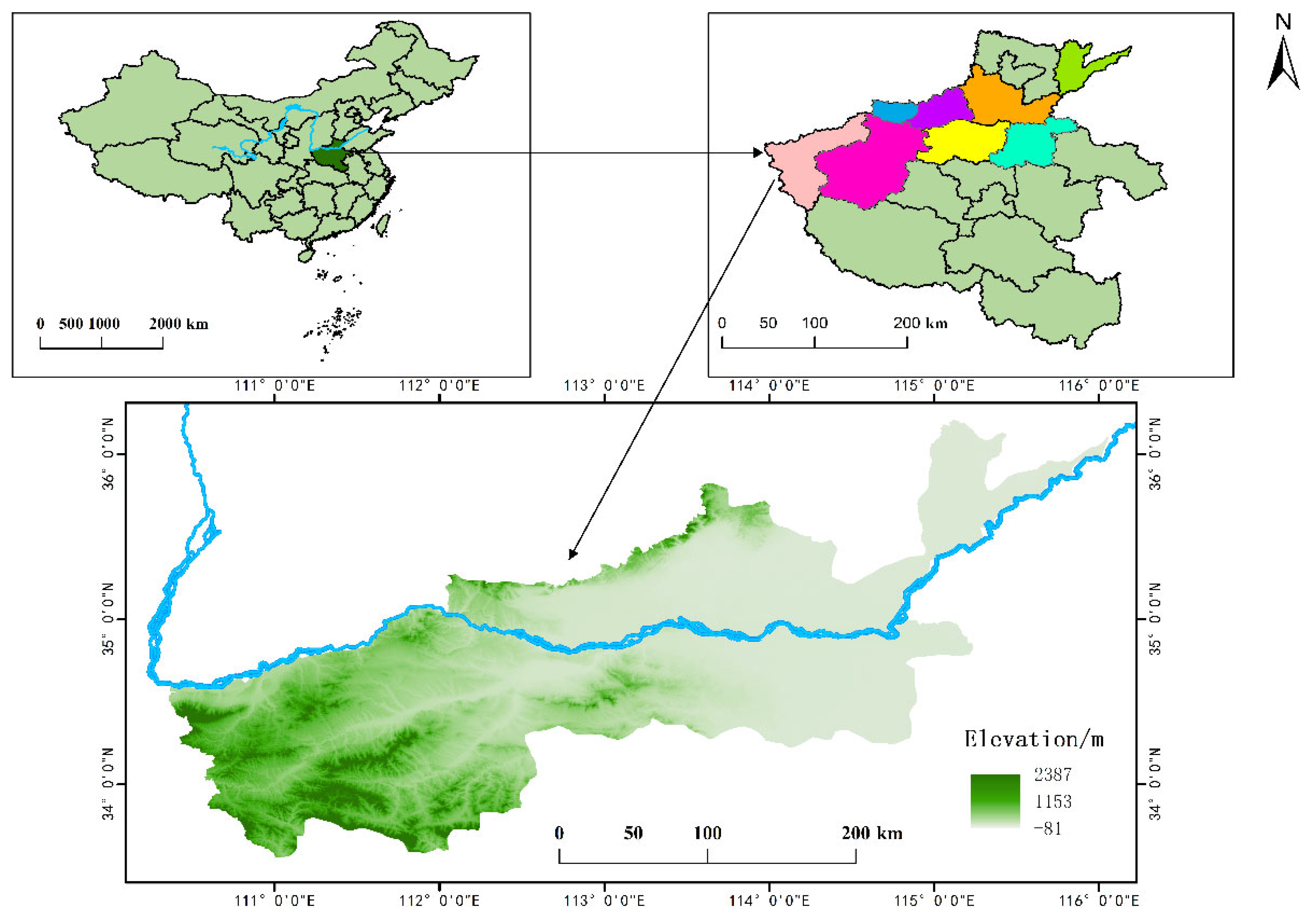 - Liu, J.; Wang, G.; Fu, X.; Yu, S.; Ren, M.; Shi, H.; Deng, X.; Chen, K. Evaluation of Ecological Protection and High-Quality Development Level inHenan Section of the Yellow River Basin. Yellow River 2023, 45, 7–13. [Google Scholar]