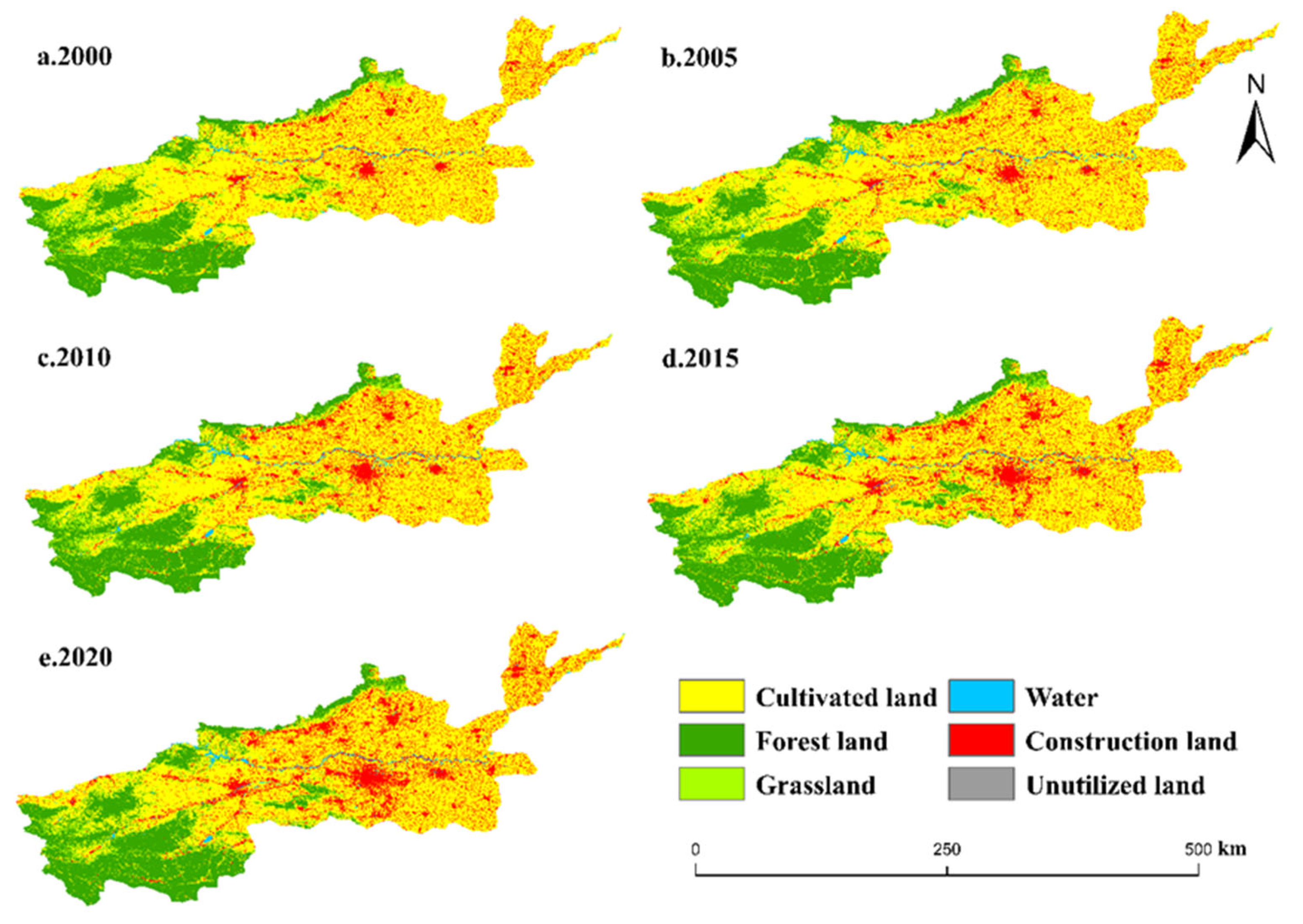 | Cultivated land | Forest land | Grass land | Water | Construction land | Unutilized land | |