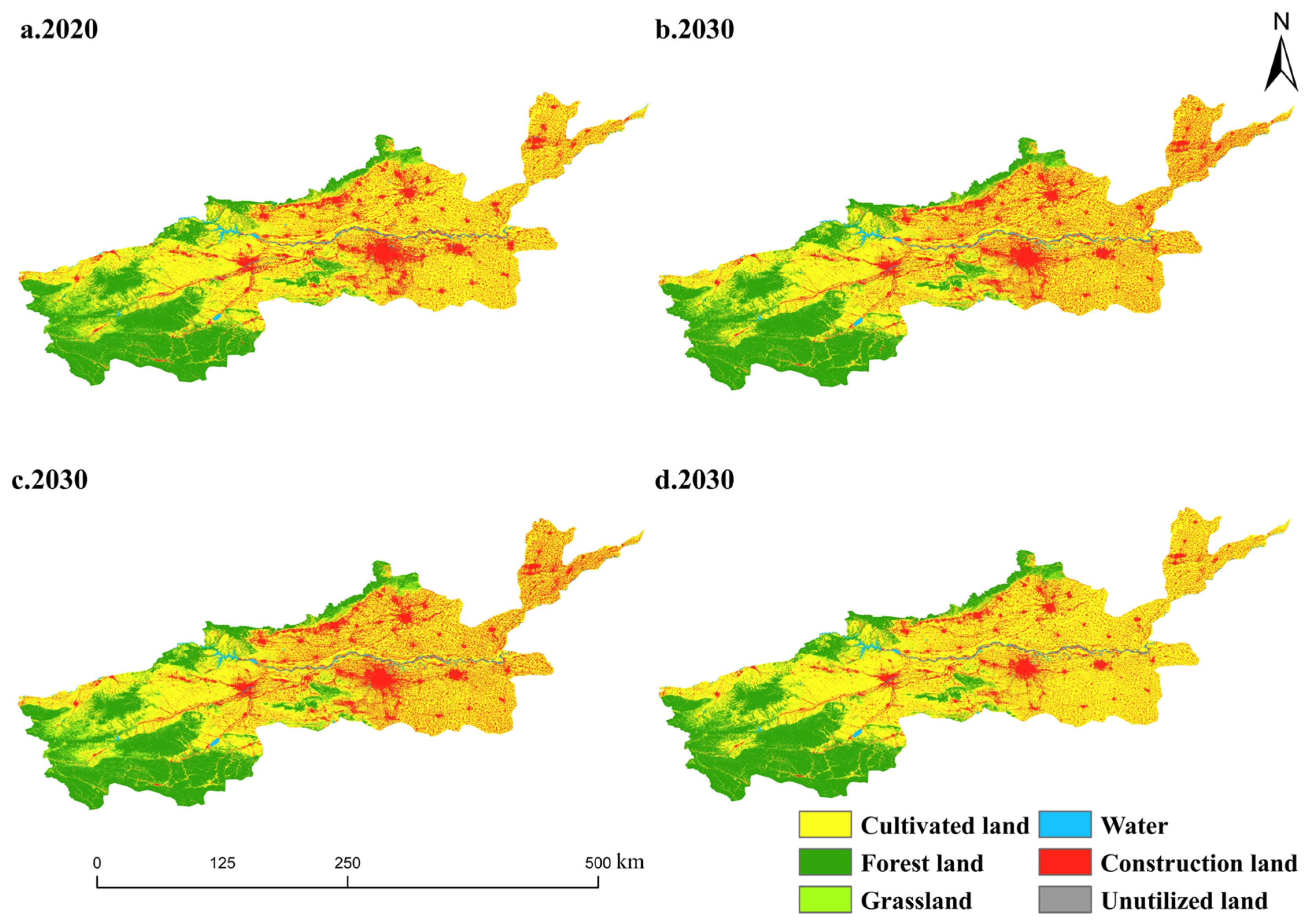 - Hu, J.; He, H.; Chen, Z. Multi-scenario simulation and spatial-temporal analysis of landuse based on PLUS model. Bull. Surv. Mapp. 2023, 28–33. [Google Scholar] [CrossRef]