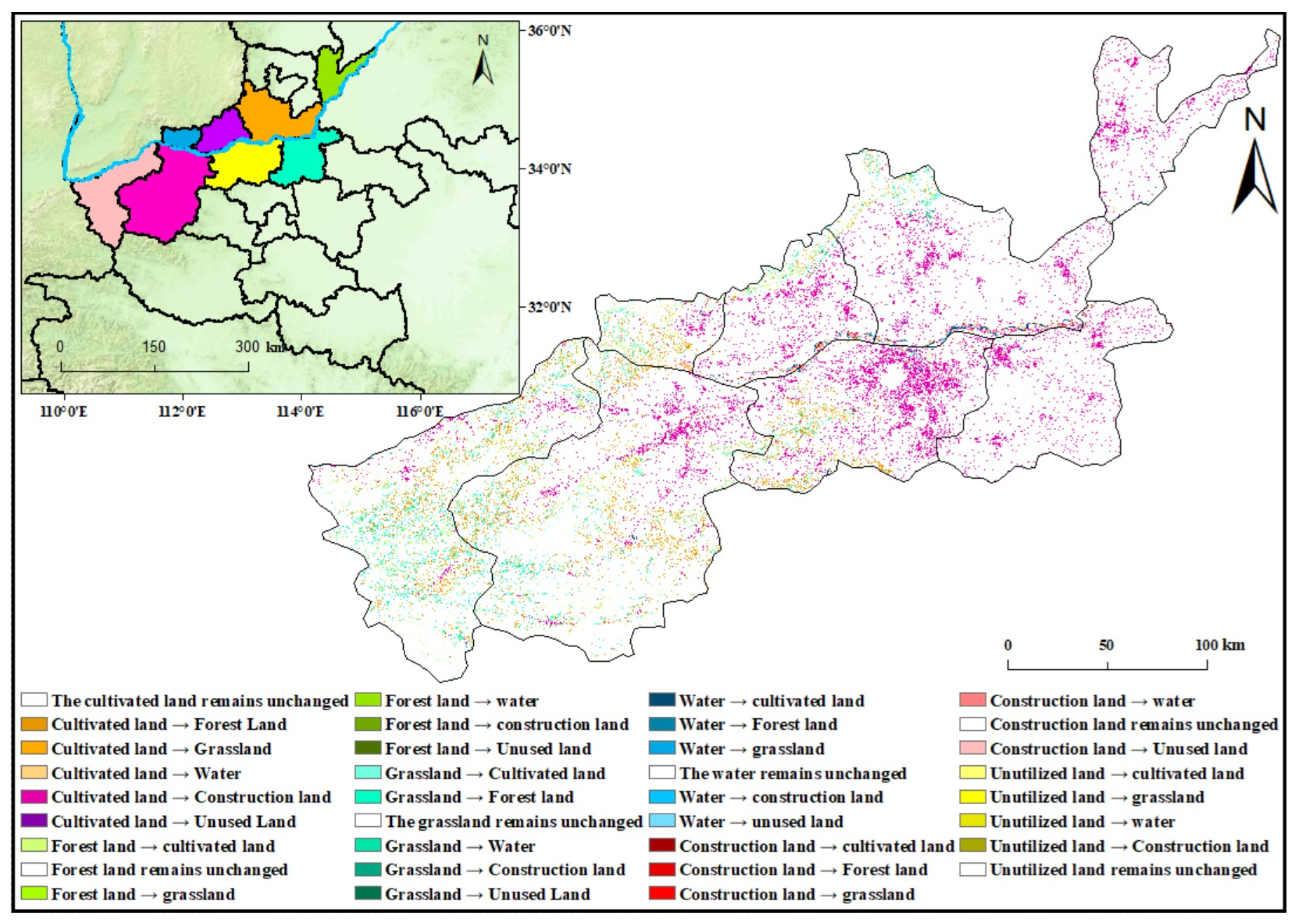 - Wang, S.; Jin, X.; Han, B.; Liu, J.; Song, J.; Zhou, Y. Understanding the process and mechanism of agricultural land transition in China: Based on the interactive conversion of cropland and natural ecological land. J. Environ. Manag. 2025, 376, 124585. [Google Scholar] [CrossRef] [PubMed]