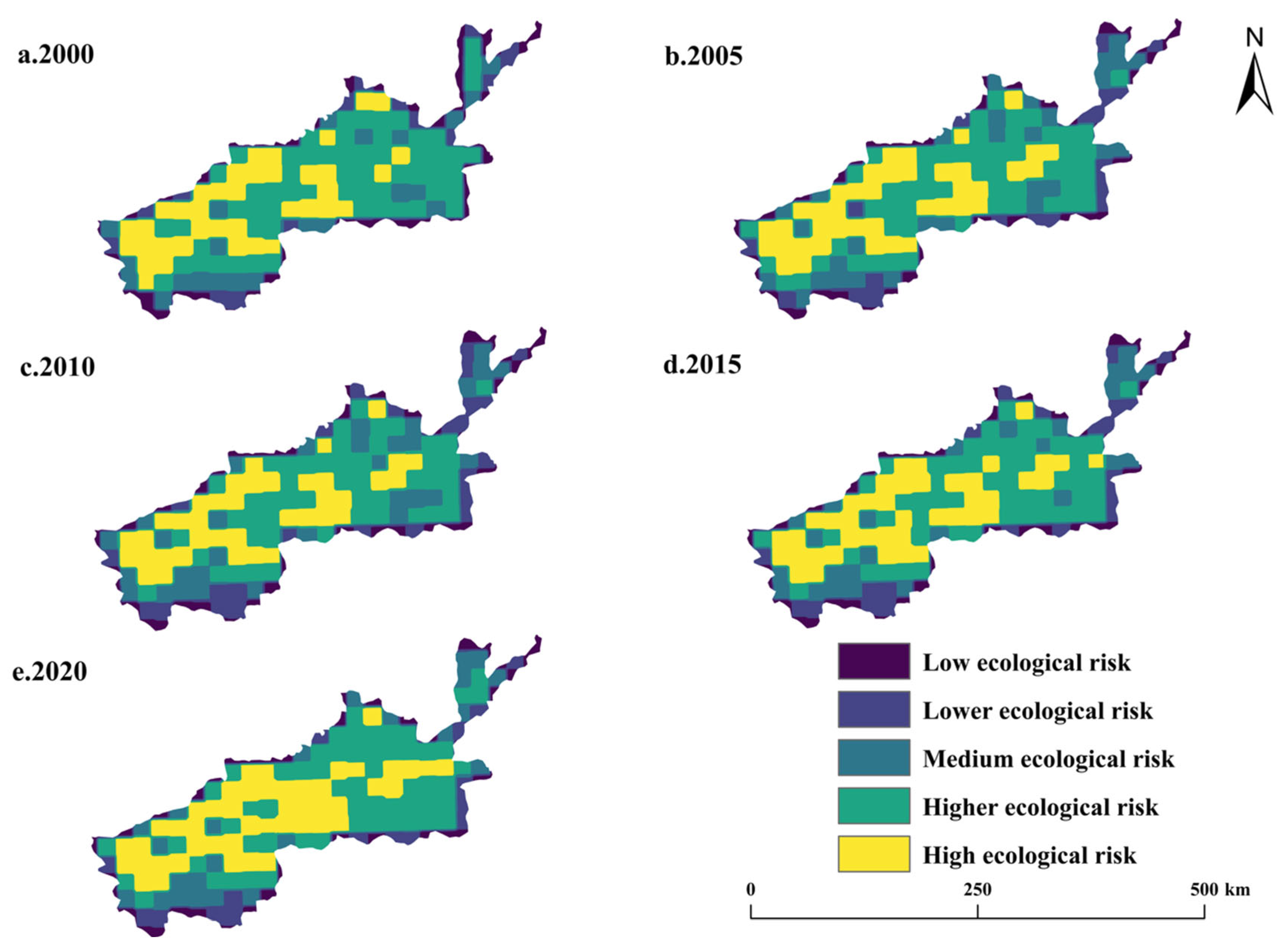 | Ecological Risk Levels | 2000 | 2005 | 2010 | 2015 | 2020 | |||||