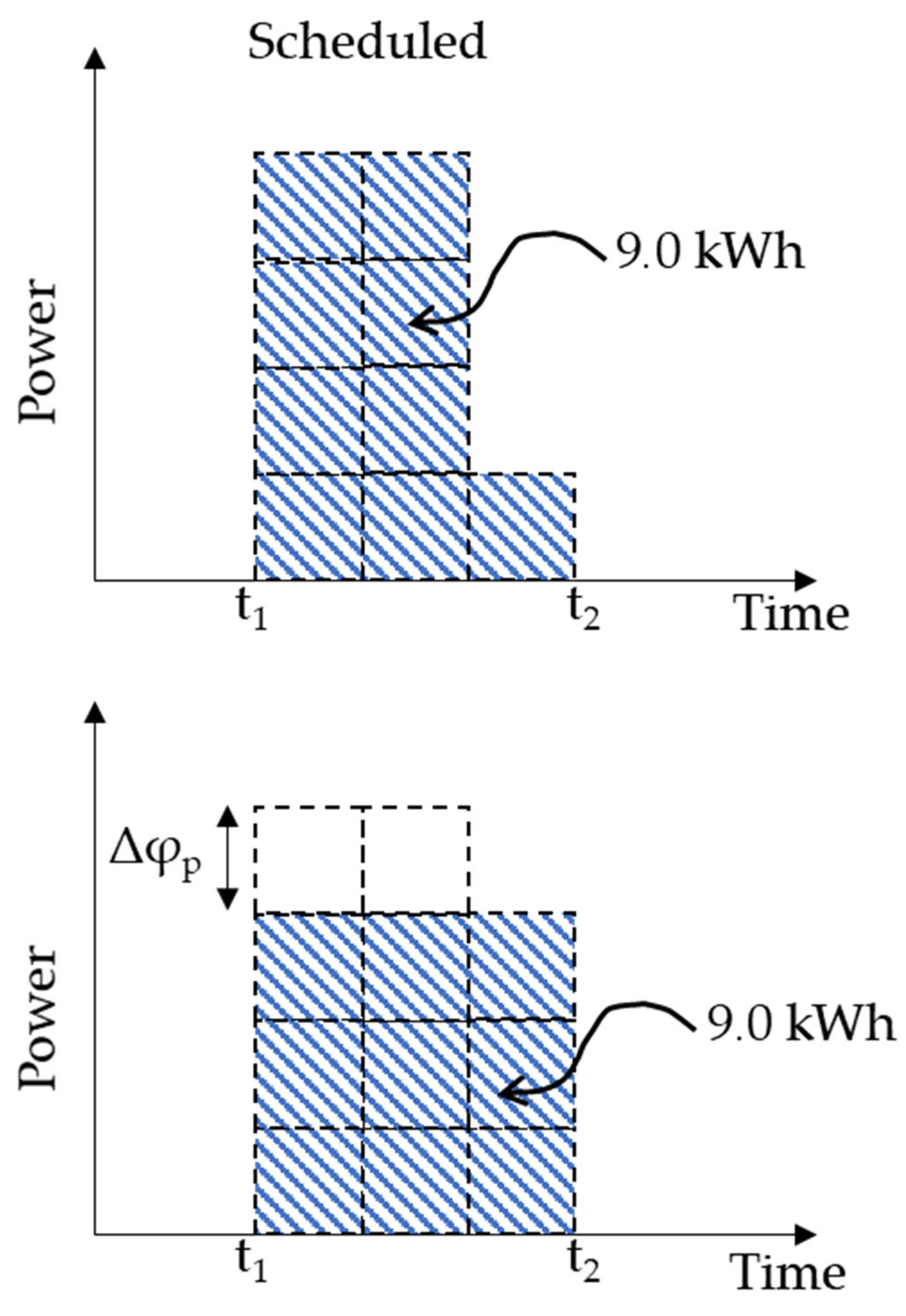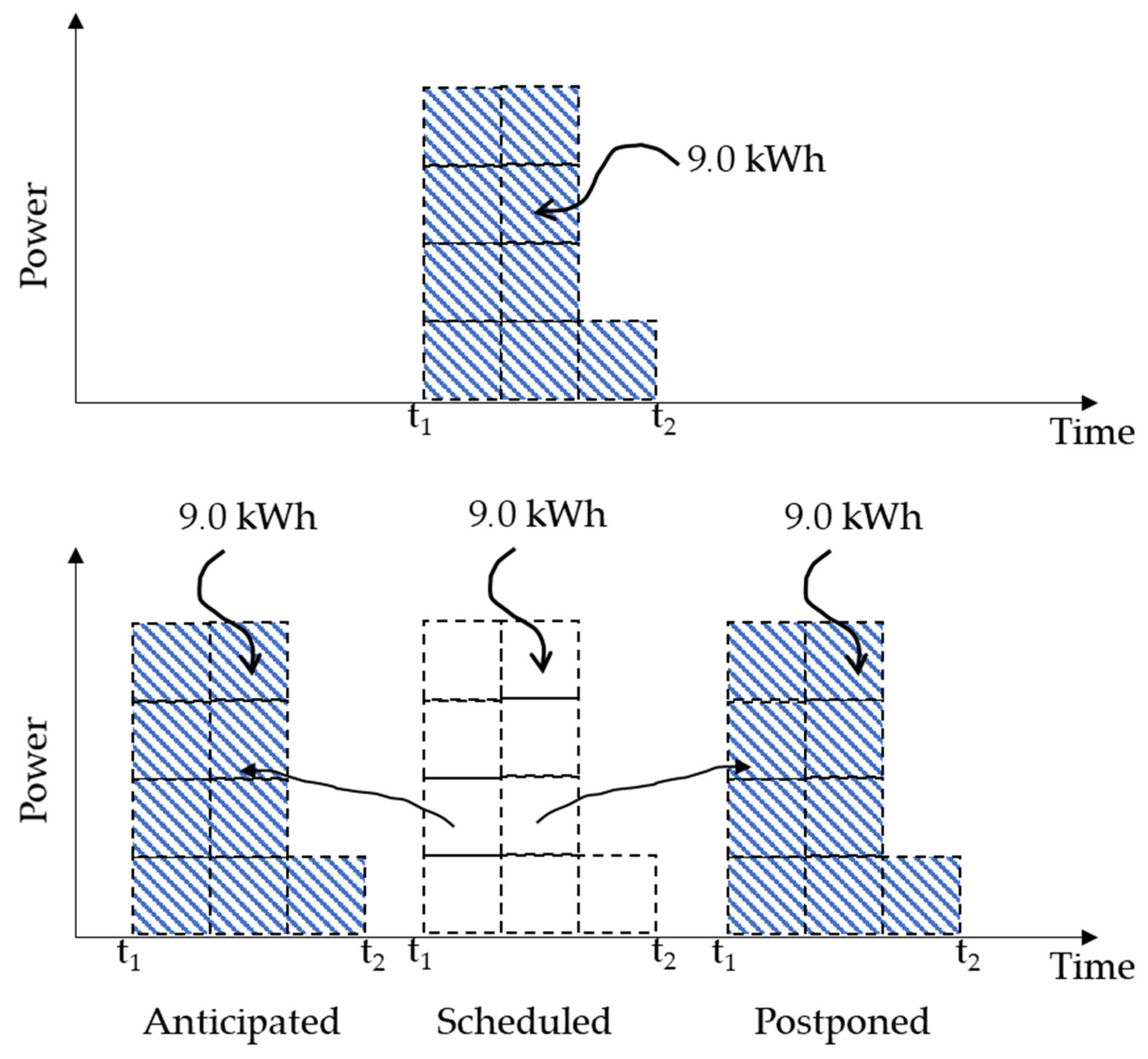 - is the flexible power consumption profile postponed to a later timeframe {ti_post, tf_post} relative to the originally scheduled interval.