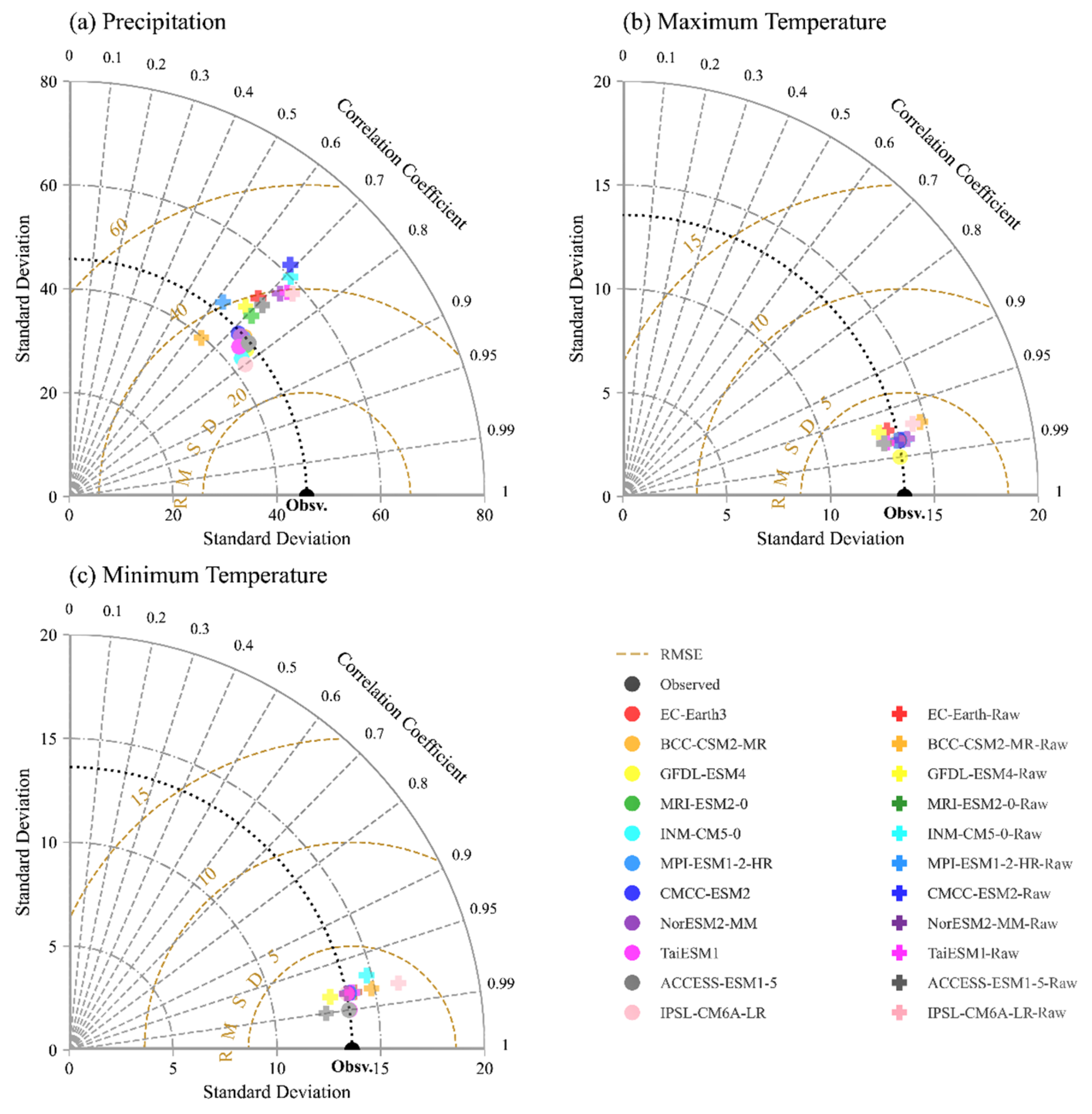 3.1. Evaluation for Historical Climate Variables of GCMs