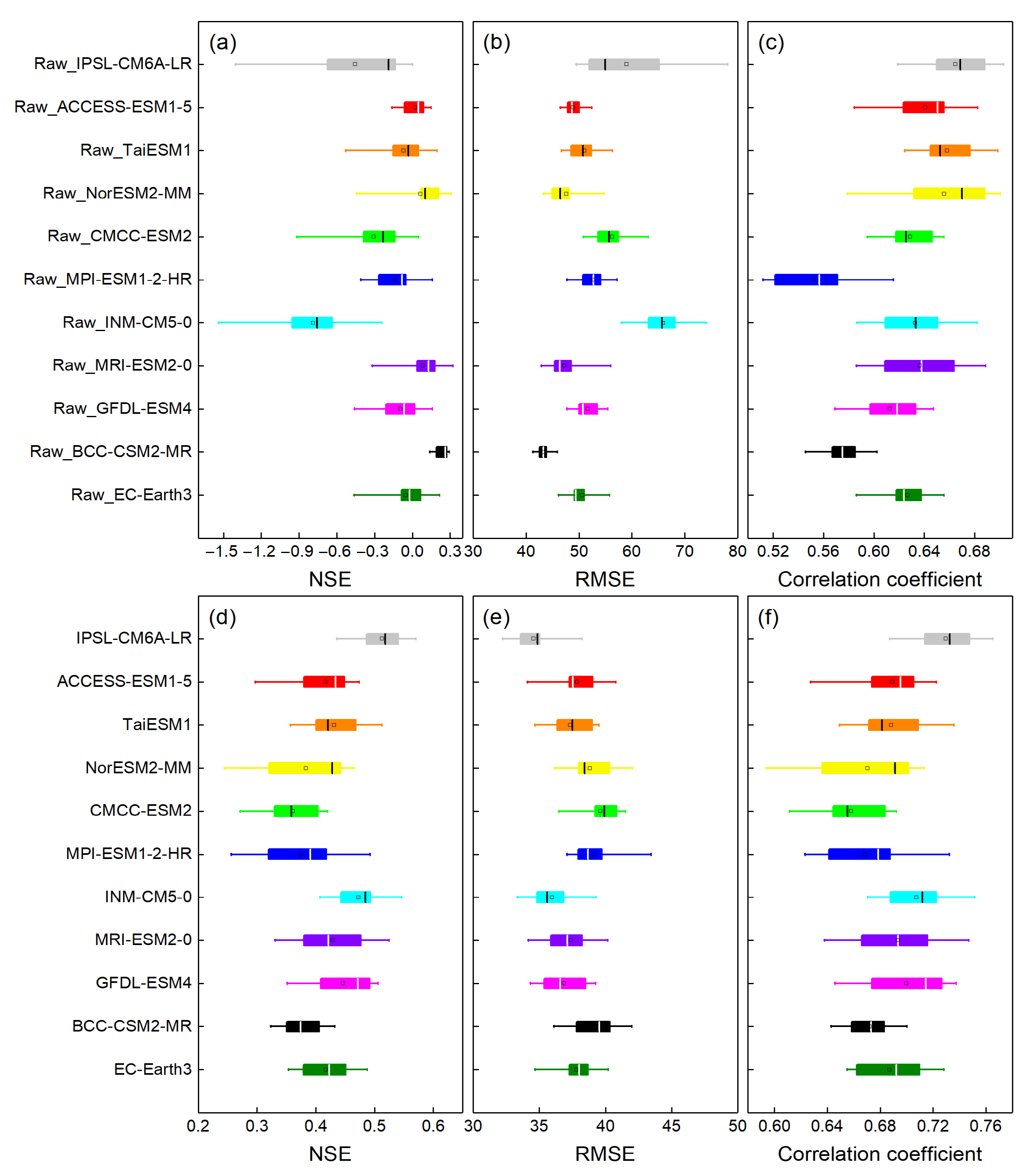 - Li, W.; Liu, H.; Gao, P.; Yang, A.; Fei, Y.; Wen, Y.; Su, Y.; Yuan, X. Development of an MPE-BMA Ensemble Model for Runoff Prediction Under Future Climate Change Scenarios: A Case Study of the Xiangxi River Basin. Sustainability 2025, 17, 4714. [Google Scholar] [CrossRef]