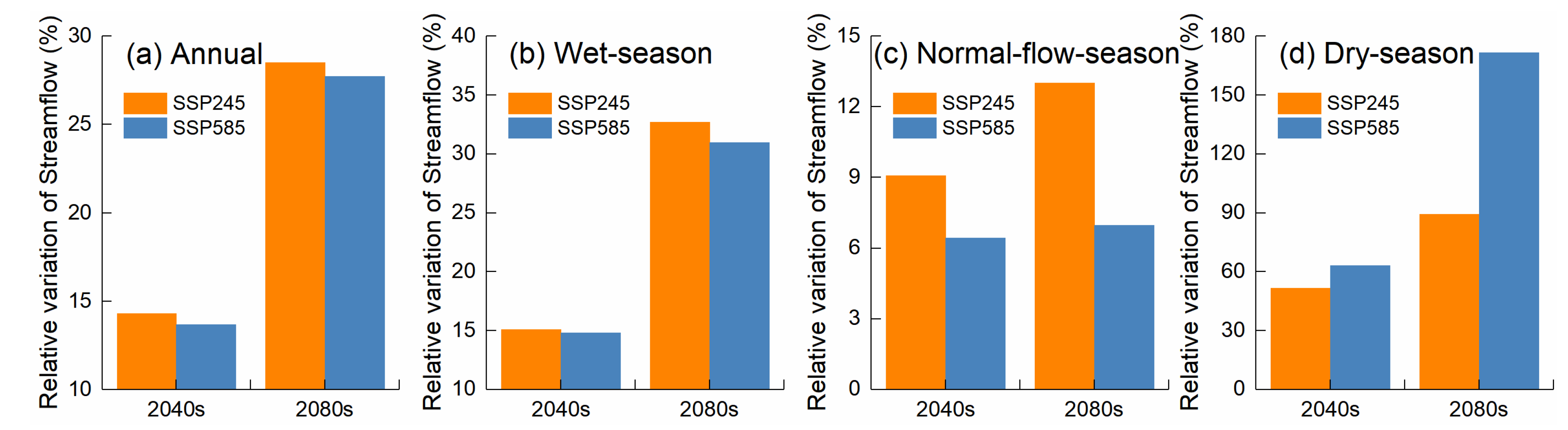- Zhou, J.; Lu, H.; Yang, K.; Jiang, R.; Yang, Y.; Wang, W.; Zhang, X. Projection of China’s future runoff based on the CMIP6 mid-high warming scenarios. Sci. China Earth Sci. 2023, 66, 528–546. [Google Scholar] [CrossRef]