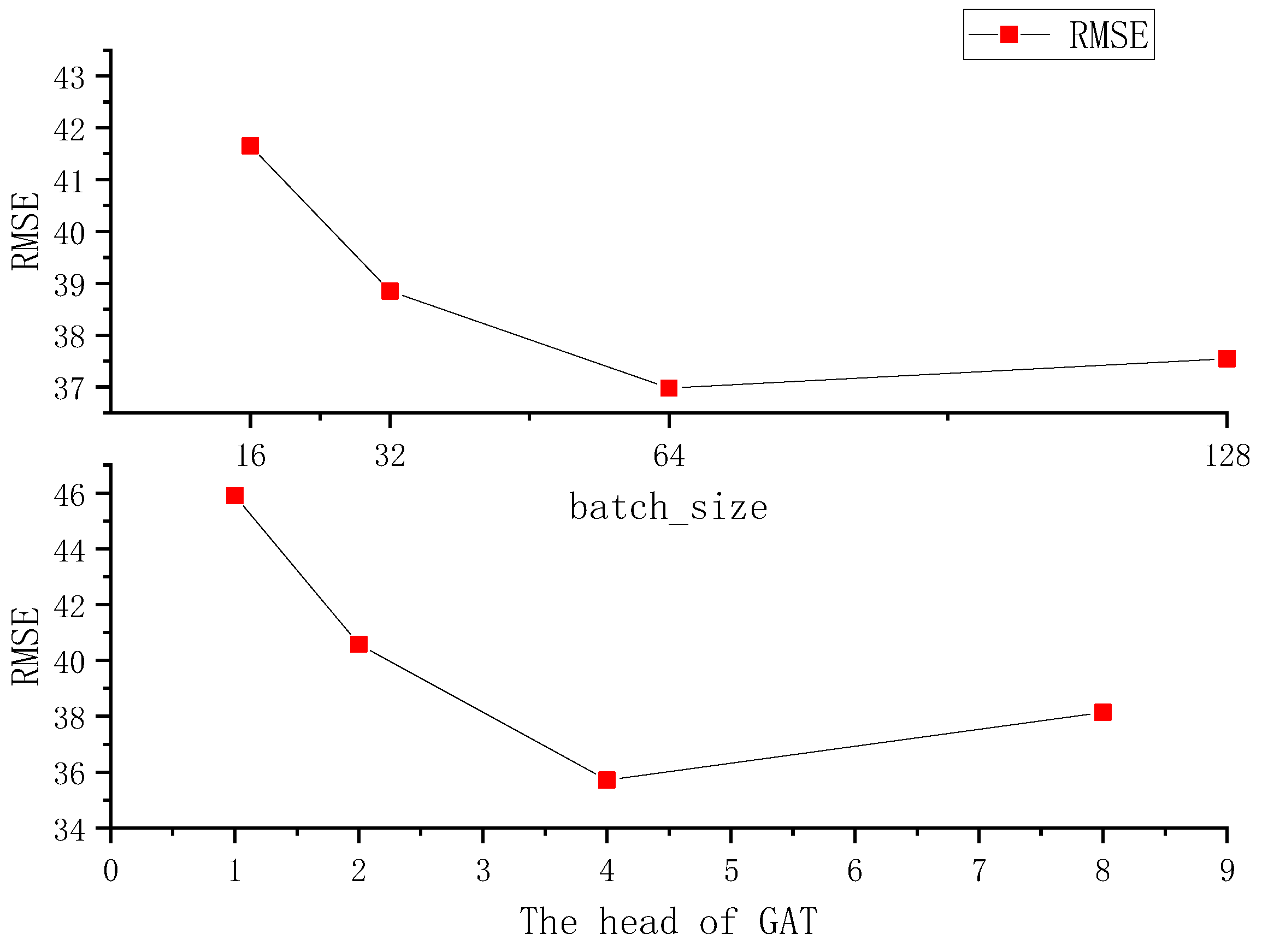 - Not using spatial feature extractor (T_ED-GATGRU): This model removes the GAT module that involves spatial feature extraction and only fuses temporal and external environmental features. It still uses the ENCODER-DECODER structure to achieve traffic prediction for the next time step of input data, and observes the effectiveness of the model that only considers the correlation between temporal and external features.