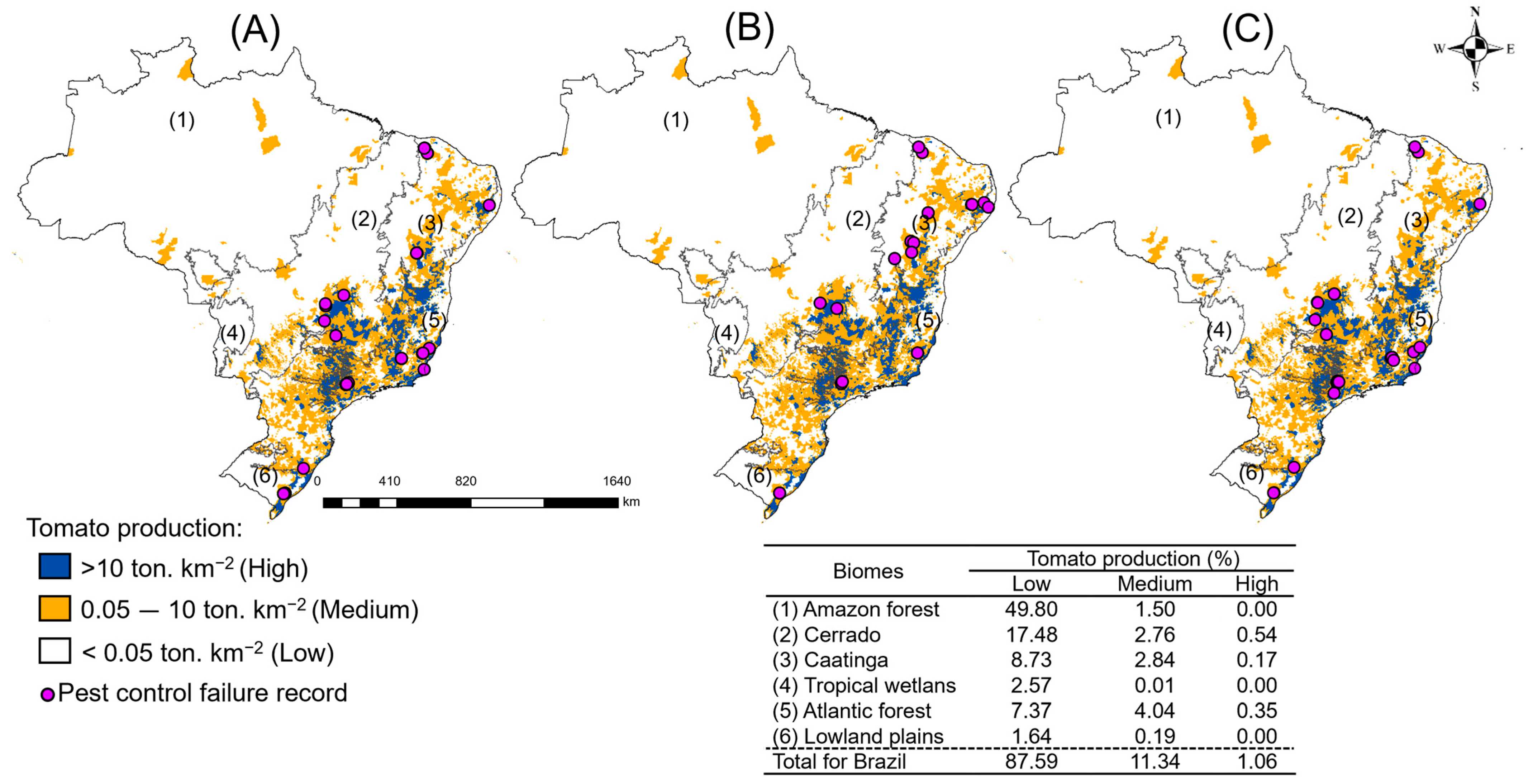 2.3.2. Risks of Pest Control Failures in Biomes