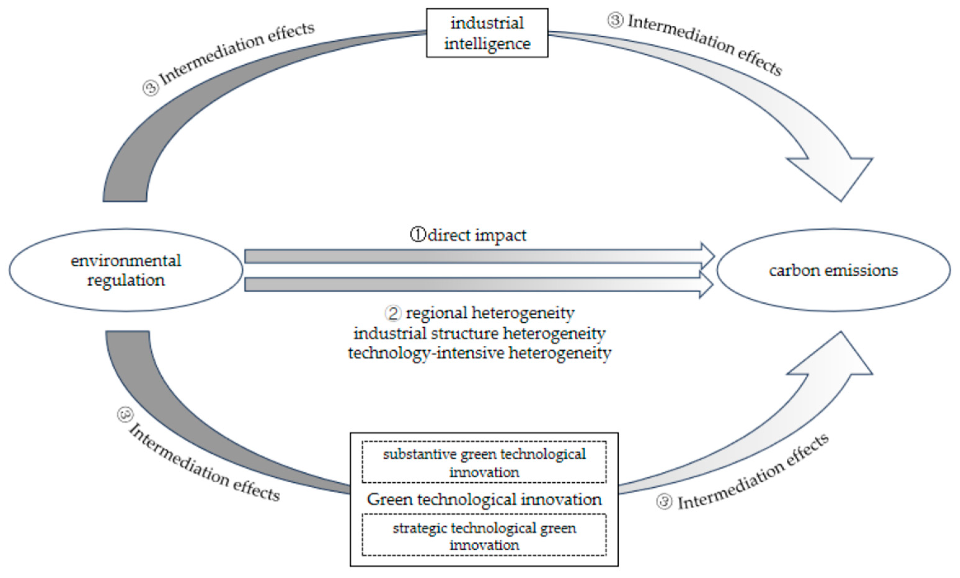 APA StyleOu, Y., Li, Y., & Zhang, T. (2025). Implementation Pathways for Carbon Emission Reduction Through Environmental Regulations: Synergistic Mechanisms of Industrial Intelligence and Green Technological Innovation. Sustainability, 17(17), 7918. https://doi.org/10.3390/su17177918