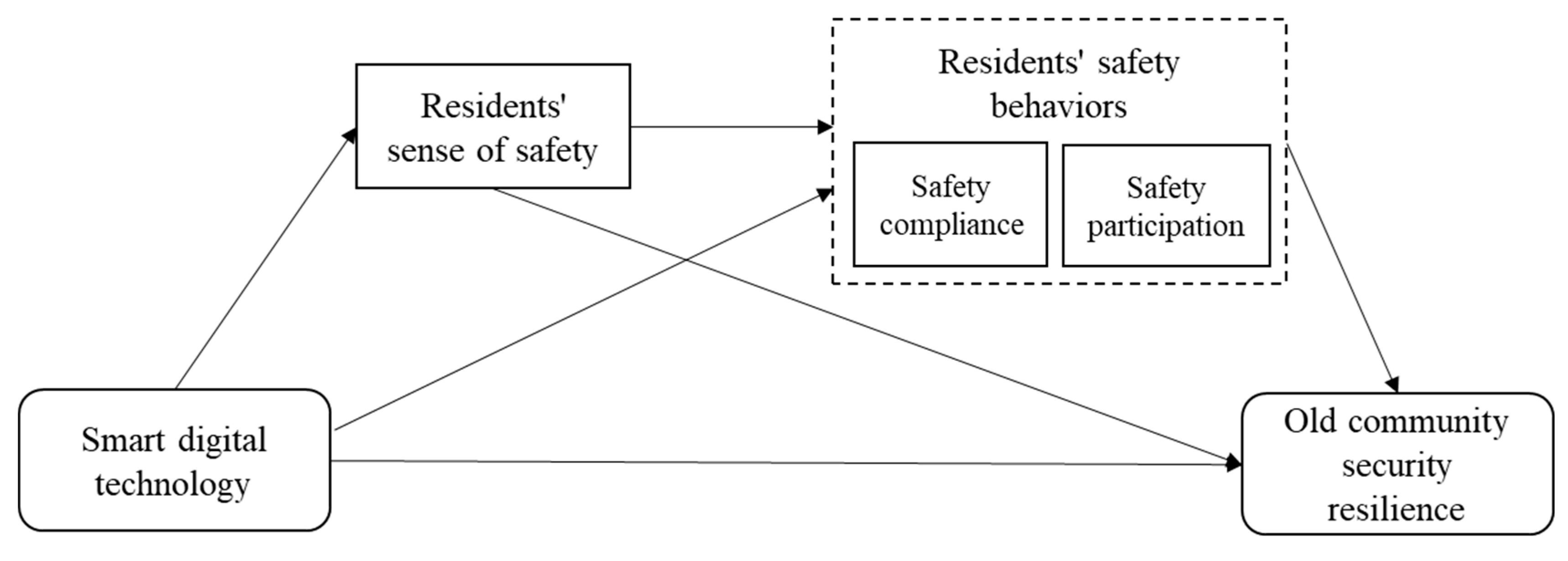 APA StyleZhang, C., Wang, L., Wang, C., & Gu, T. (2025). How Can Smart Digital Technology Improve the Security Resilience of Old Urban Communities? The Chain Mediating Effect of Residents’ Sense of Safety and Safety Behaviors. Sustainability, 17(17), 7921. https://doi.org/10.3390/su17177921