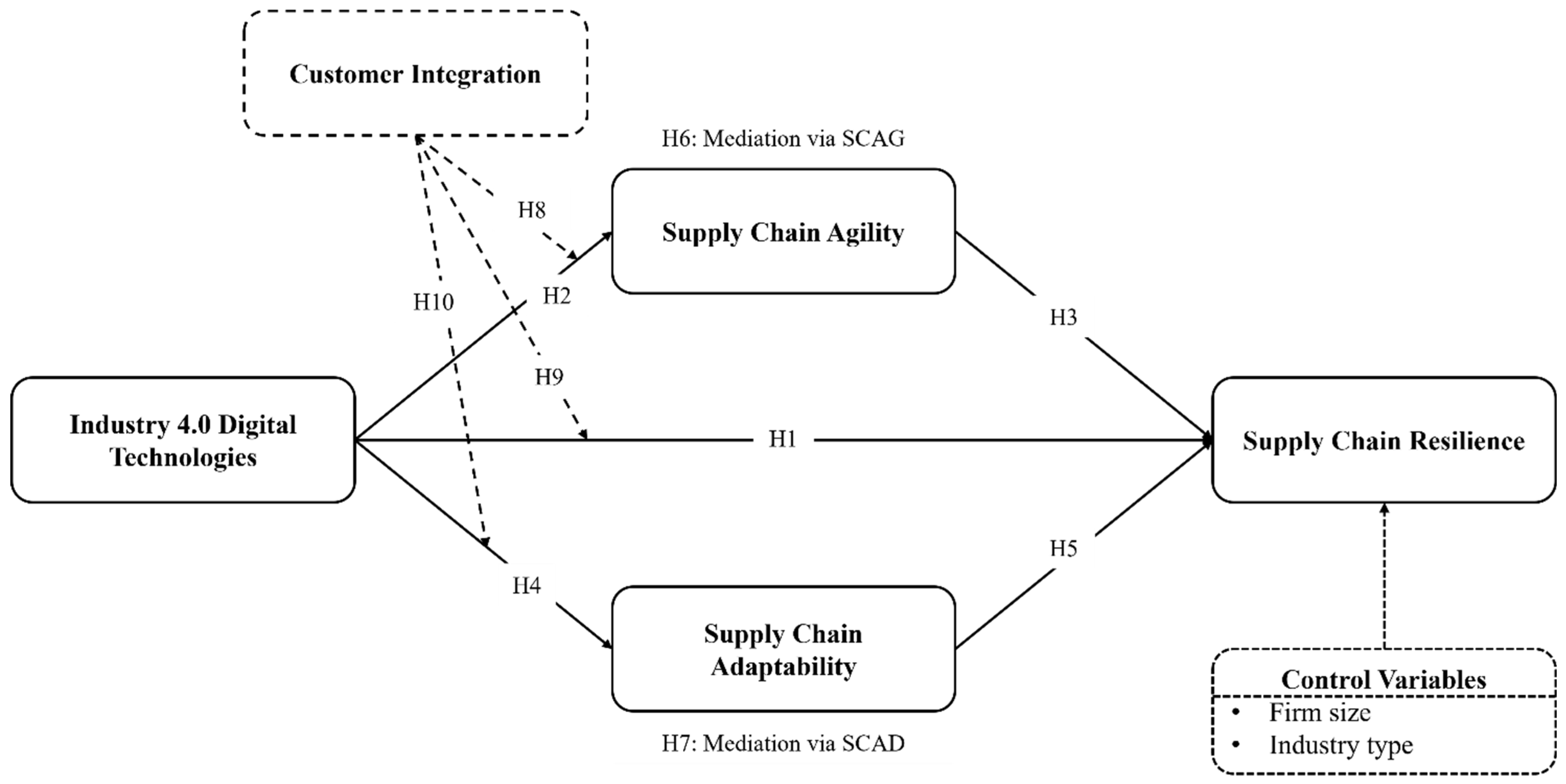 APA StyleAlfaqiyah, E., Alzubi, A., Aljuhmani, H. Y., & Öz, T. (2025). How Industry 4.0 Technologies Enhance Supply Chain Resilience: The Interplay of Agility, Adaptability, and Customer Integration in Manufacturing Firms. Sustainability, 17(17), 7922. https://doi.org/10.3390/su17177922